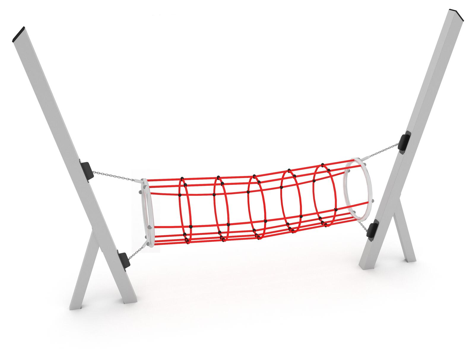 Klatretunnel i pulvergalvaniseret og pulverlakeret stål. reb i rustfrit stål beklædt med polypropylen. Alle potentielt skarpe overflader er dækket af gummi- eller plastpropper for at minimere risikoen for kvæstelser. Forankring til nedstøbning medfølger. Ved installation skal den medfølgende manual altid følges. Den nyeste version kan rekvireres på forespørgsel.