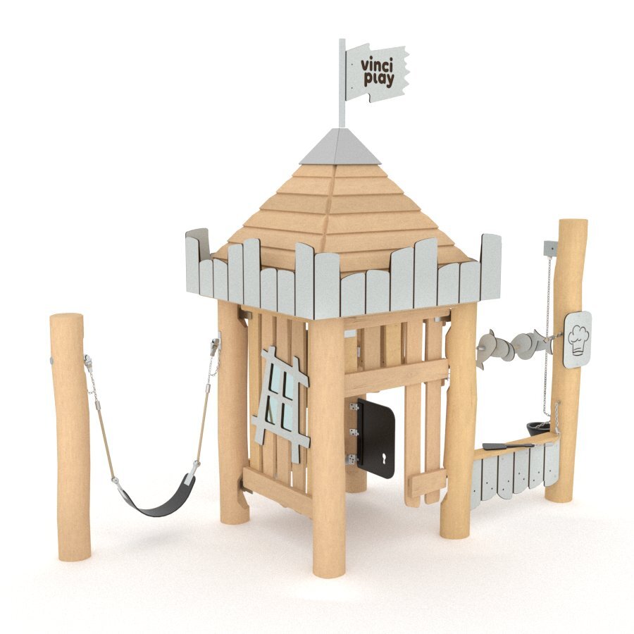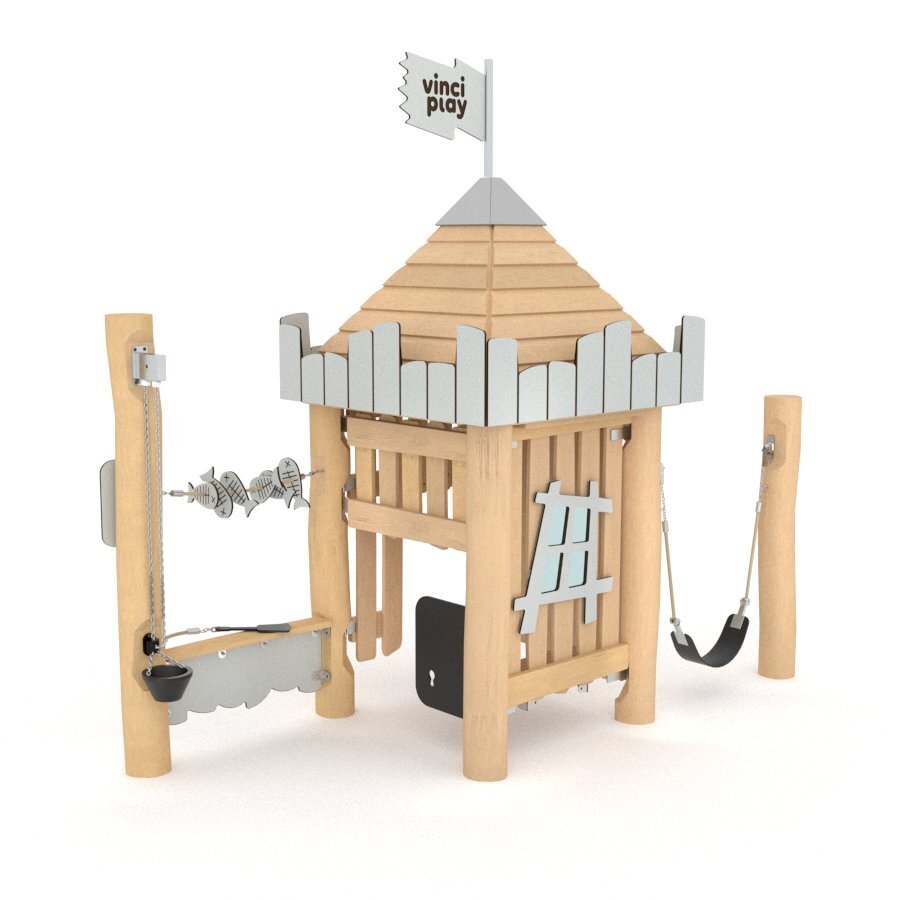 Denne borg er særligt velegnet til de yngre børns sociale og aktive rollelege i forbindelse med sandkassen. Her får børnene mulighed for at veje, øse og hejse sandet op og ned i kurven. Den lave disk kan bruges både som butik, køkken eller iskiosk. Bæltegynge indbyder til skøn og kildrende leg. Robinietræ er fra naturens side yderst resistent mod svamp og råd og skal såleds ikke imprægneres for at modstå det danske vejrs omskriftelige luner. At det er langsomtvoksende gør robinietræet til et bæredygtigt valg for dig, der er på udkig efter et Tydeligt instruktionsskilt med basisøvelser trykt på vejrbestandigt aluminium. Monteres efter installationsvejledning. Ved installation skal den medfølgende manual altid følges. Den nyeste version kan rekvireres på forespørgsel. K21 forankring medfølger som standard.