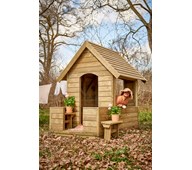 Et stort legehus, der tilskynder til fantasifuldt rollespil. Det lille vindue i gavlen og det store på den korte side gør, at legehuset fungerer lige så godt som kiosk eller butik. Nogle gange kan indtrykket blive for stort i udemiljøet og så kan det være rart at trække sig tilbage og bruge huset som et tilflugtssted. Legehuset er indrettet med bord og 2 bænke og har en fin lille veranda. Legehuset er fremstillet af massivt PEFC-certificeret fyrretræ. Mål: 190x160x196 cm. Leveres usamlet som knock-down.. Løsning til nedgravet jordforankring eller overflademontering vælges som tilvalg.