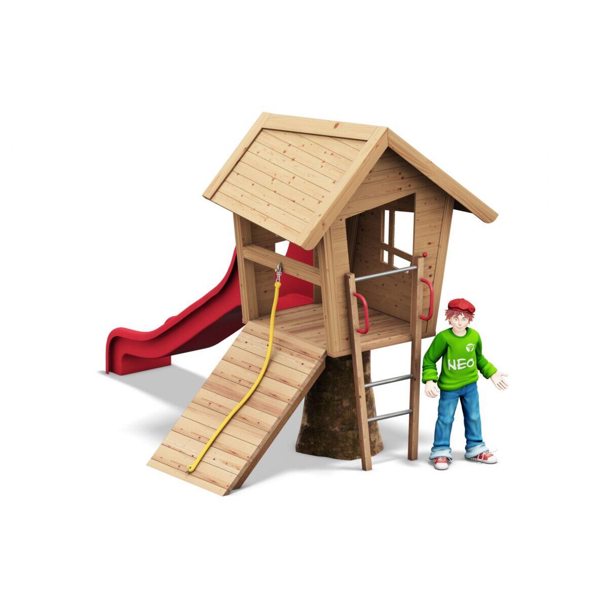 Fantifulde former og sjove detaljer, der stimulerer motorik, koordination og social interaktion via en kombination af forskellige klatre- og balanceelementer. Fremstillet af ubehandlet lærk og stolpesko i rustfrit stål.