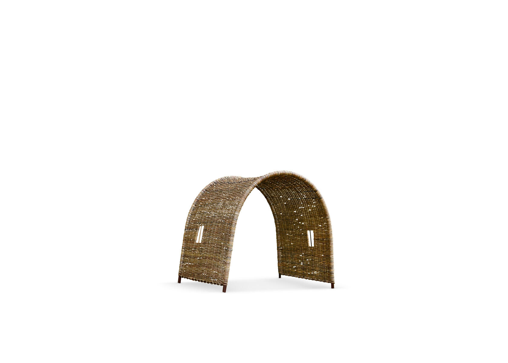 En hyggelig krybind-hule i udemiljøet skaber en fantasifuld verden under buen af rattan. Med sit smukke og åbne design kan børnene få et afskærmet område, hvis de vil trække sig lidt tilbage, men stadig have godt overblik over omgivelserne. Krybberummet inviterer også til rolleleg, samtaler og fungerer fint som et lille læsehjørne. Med sit naturlige udtryk bliver buen et hyggeligt indslag i uderummet.