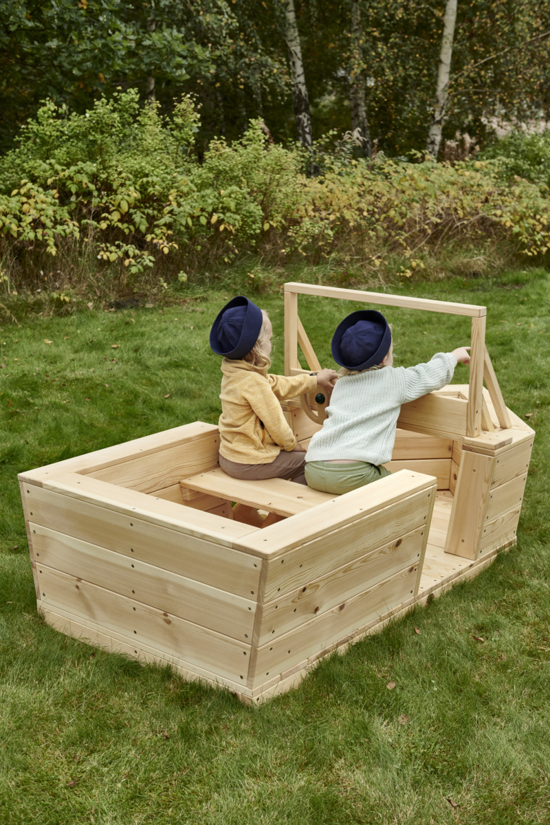 En båd på børnehavens udendørsområde tiltrækker fantasifuld rolleleg. I denne legebåd er der plads til flere børn, som kan lege sammen. Båden bidrager til et varieret udemiljø, der stimulerer fantasien. Leveres samlet. Fremstillet af massiv FSC-mærket fyrretræ, vælg mellem oliebehandlet eller rådbehandlet.