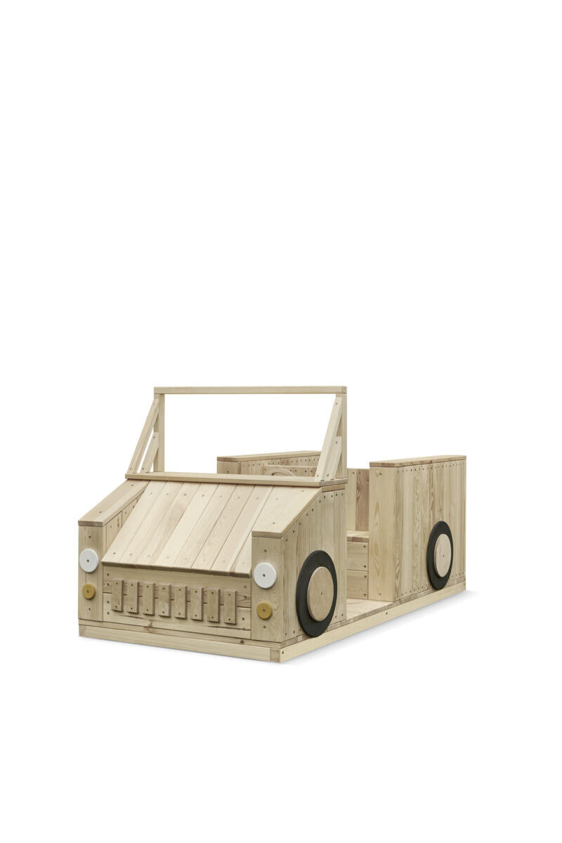En bil på børnehavens udendørsområde tiltrækker fantasifuld rolleleg. I denne lege-bil er der plads til flere børn, som kan lege sammen. Legebilen bidrager til et varieret udemiljø, der stimulerer fantasien. Leveres samlet. Fremstillet af massiv FSC-mærket fyrretræ, vælg mellem oliebehandlet eller rådbehandlet.