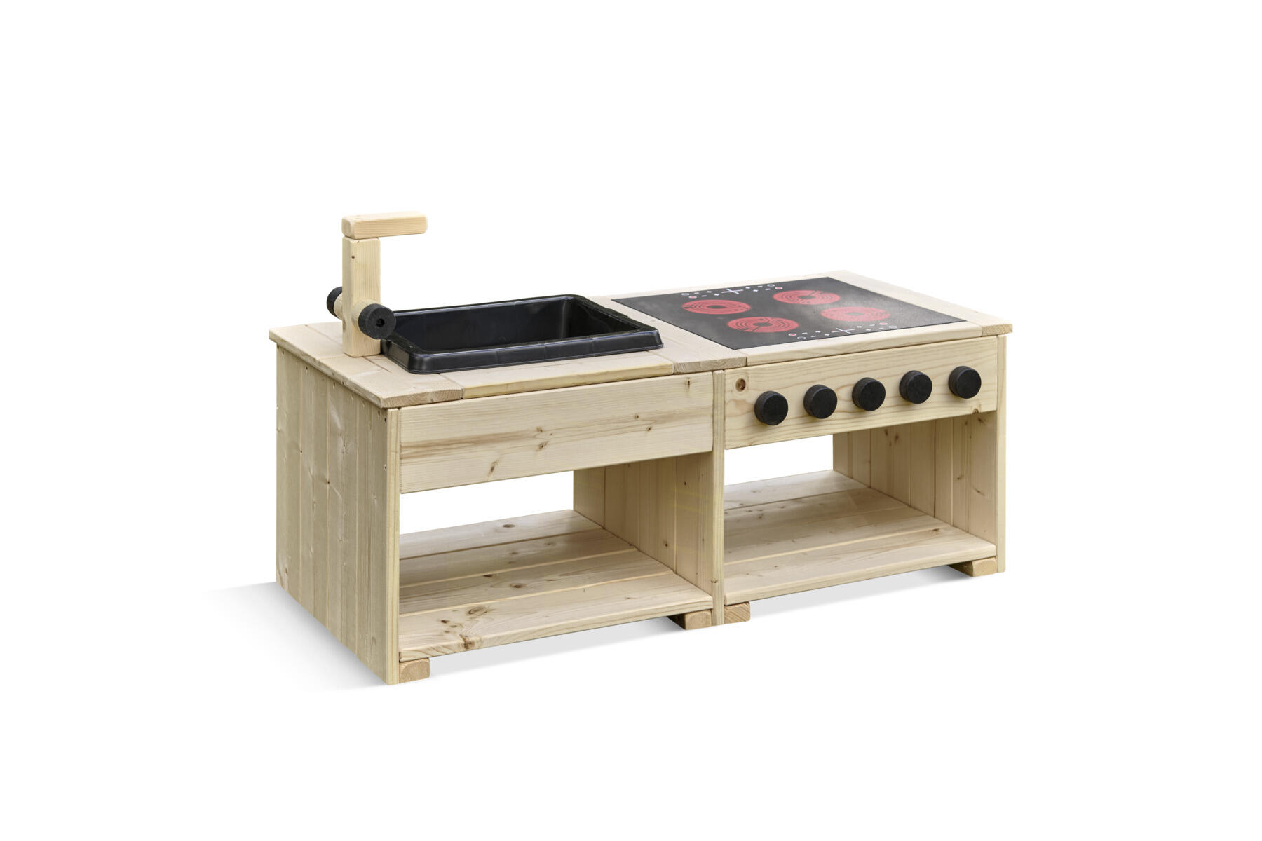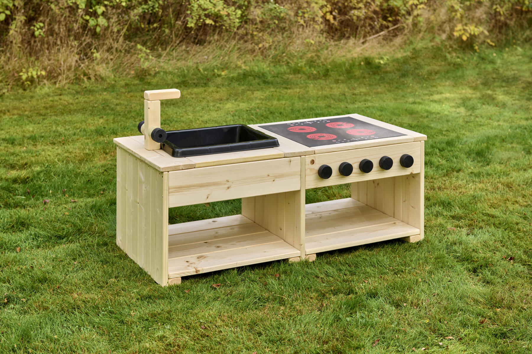 Dette robuste udekøkken skaber et inspirerende uderum til åben og fantasifuld rolleleg.