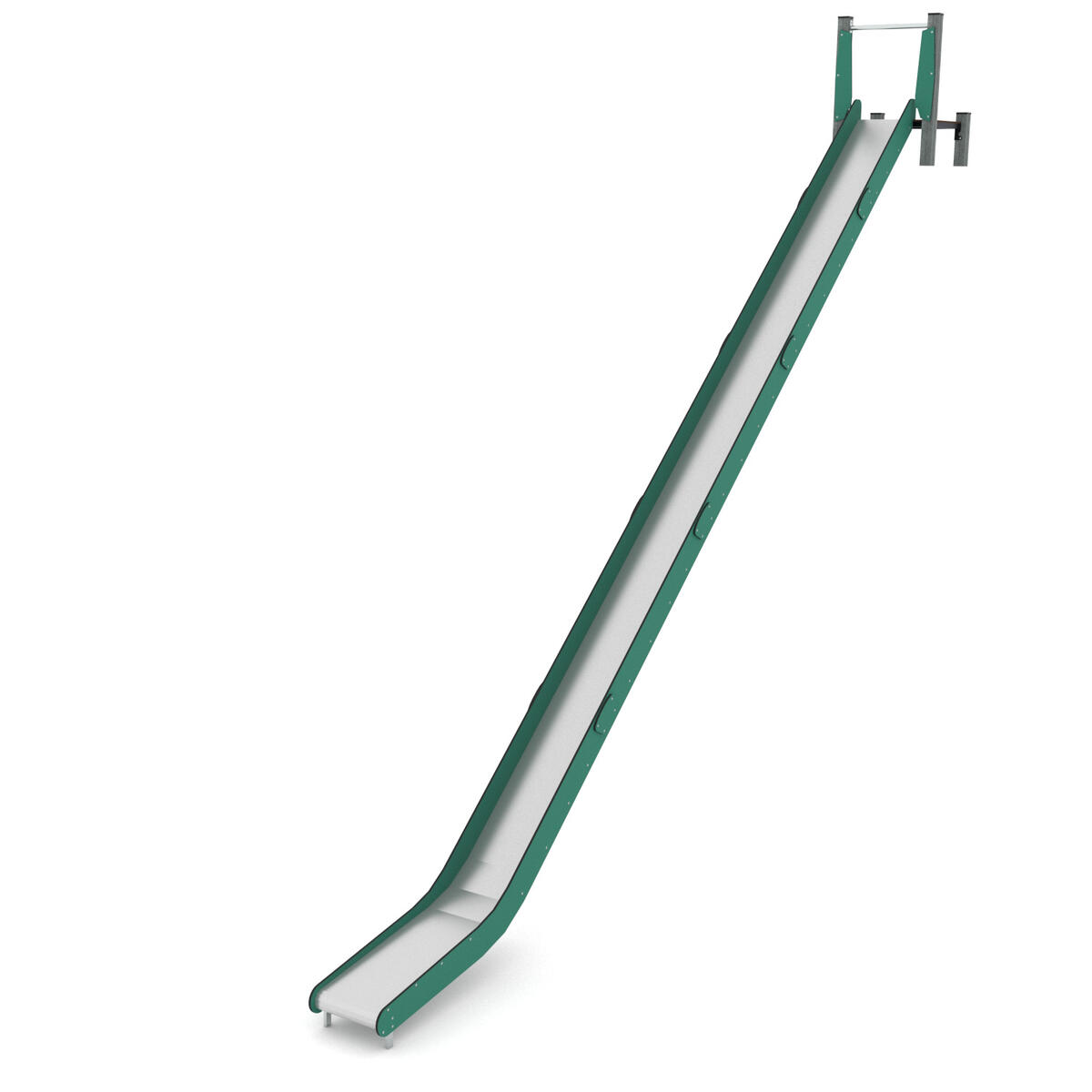 En traditionel rutsjebane med platform. Denne konstruktion er baseret på 100% genbrugsmateriale. Alle stolper er lavet af genbrugstekstiler. Nogle af de mange fordele ved dette materiale er, at det ikke ruster, ikke absorberer vand, er UV-bestandigt og alligevel er lige så holdbart som stål. Kernen i alle paneler er fra genbrugsreb og fiskenet. Som en del af den cirkulære økonomi lægger disse bæredygtige og miljøvenlige materialer grundlaget for fremtidige legepladser med lavere kuldioxidudledning. Ved installation skal den medfølgende manual altid følges. Den nyeste version kan rekvireres på forespørgsel. K1 forankring medfølger som standard.