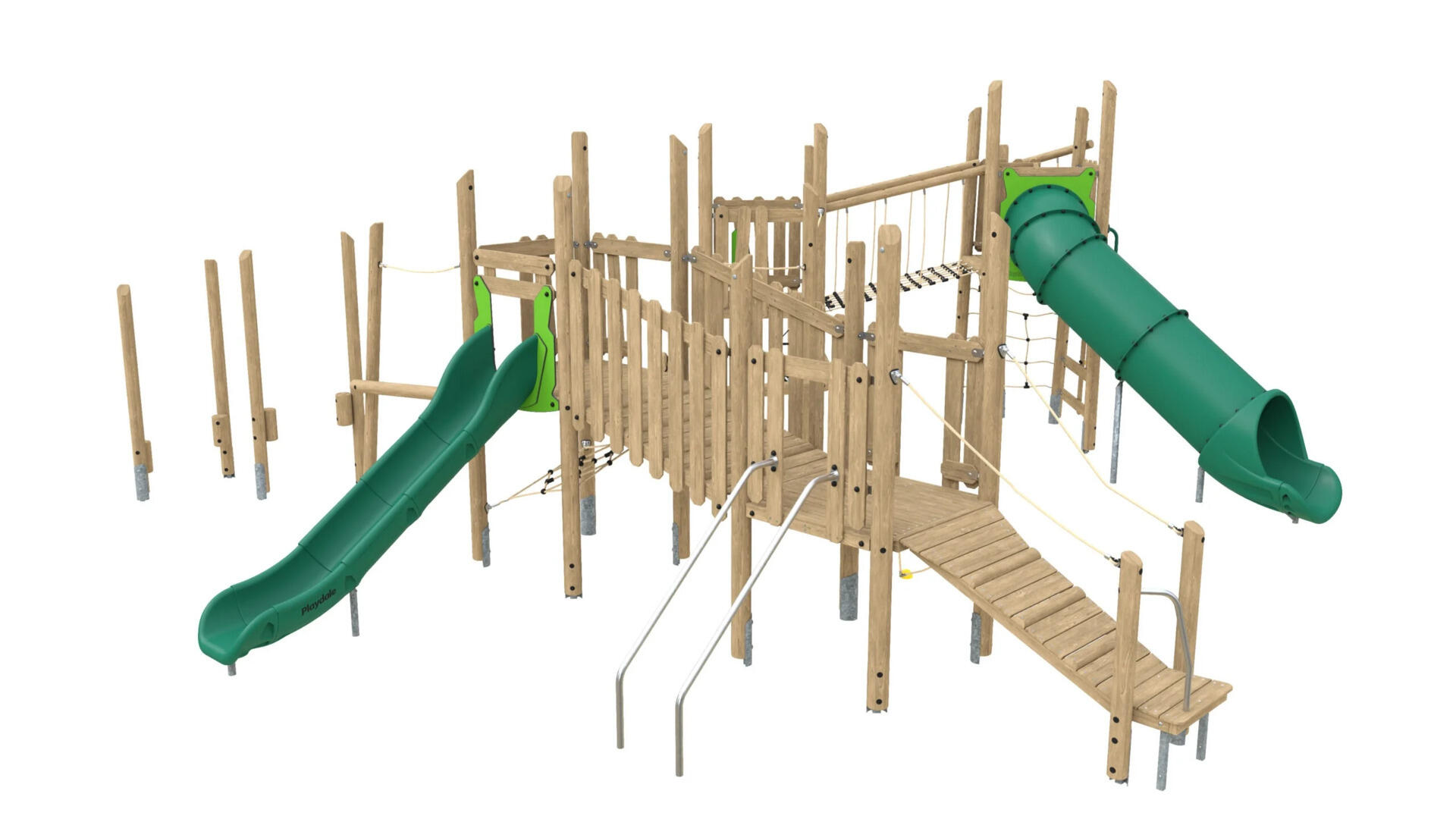 En stor og alsidig konstruktion, der giver børnene en komplet legeoplevelse i harmoni med naturen.