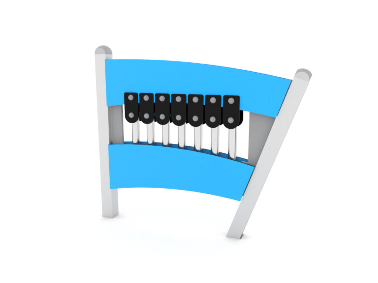 Legepanel udformet som en xylofon. Xylofonen afgiver lyde når de sorte dele slår ind på metalrørene. Materiale: pulvergalvaniseret og pulverlakeret stål. Paneler i multifarvet HDPE. Forankring til nedstøbning medfølger. Ved installation skal den medfølgende manual altid følges. Den nyeste version kan rekvireres på forespørgsel.
