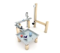 Denne store kombination er meget velegnet til, at flere børn kan lege sammen med både vand og sand. Lad børnene udforske vandets egenskaber i de 3 render. Her får børnene mulighed for at veje, øse og hejse sandet op og ned i kurven. Konstruktionen er tilpasset i højden til de yngste børn og skaber et sikkert legepladsmiljø. Stålkonstruktion med HDPE-paneler. Monteres i henhold til installationsmanualen. Ved installation skal den medfølgende manual altid følges. Den nyeste version kan rekvireres på forespørgsel.