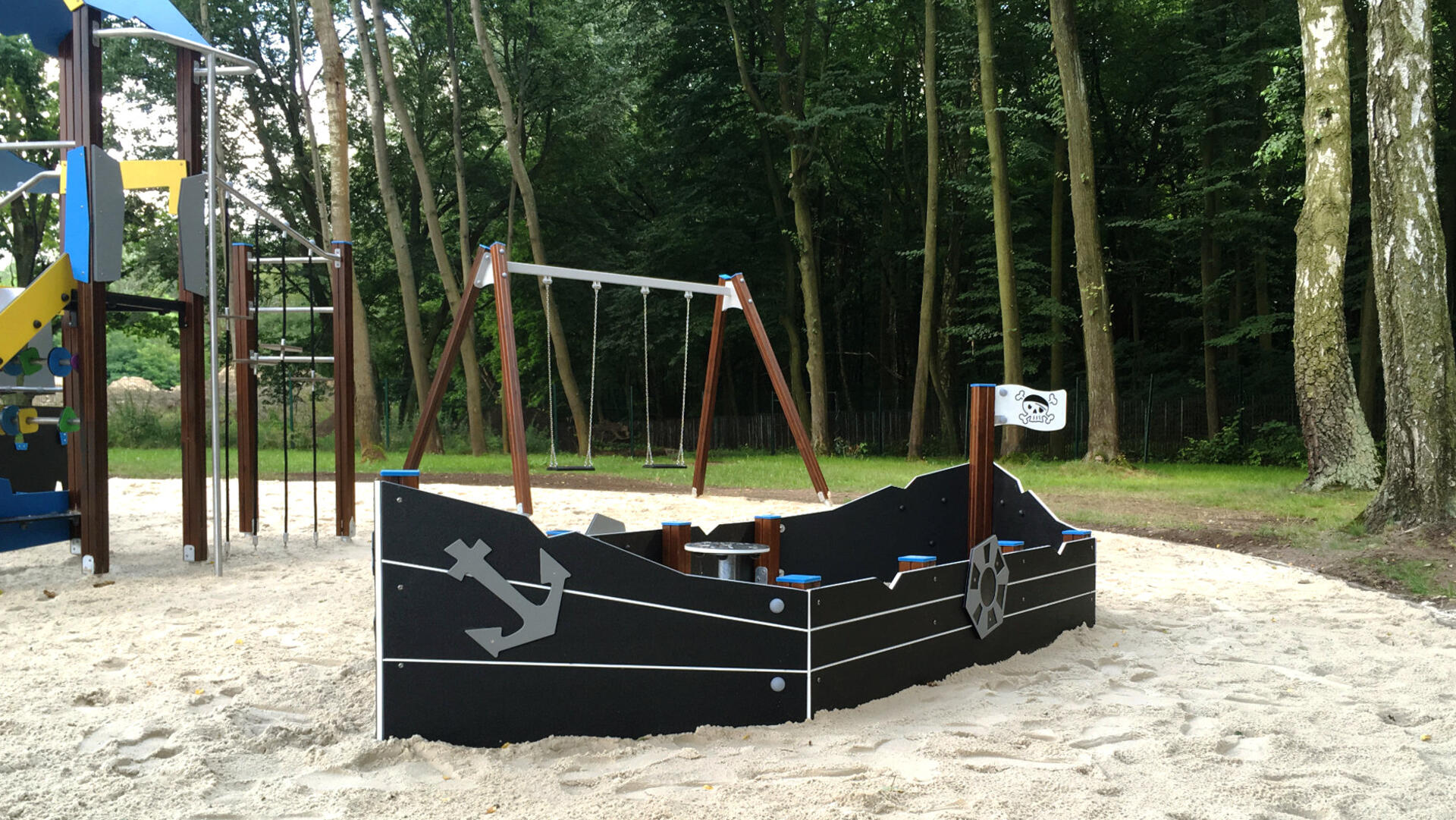 Sandkasse udformet som et piratskib med legebord og flag til temaleg. Vælg mellem paneler i HDPE (multifarvet) eller HPL (øvrige farver). Forankring til nedstøbning medfølger. Ved installation skal den medfølgende manual altid følges. Den nyeste version kan rekvireres på forespørgsel.
