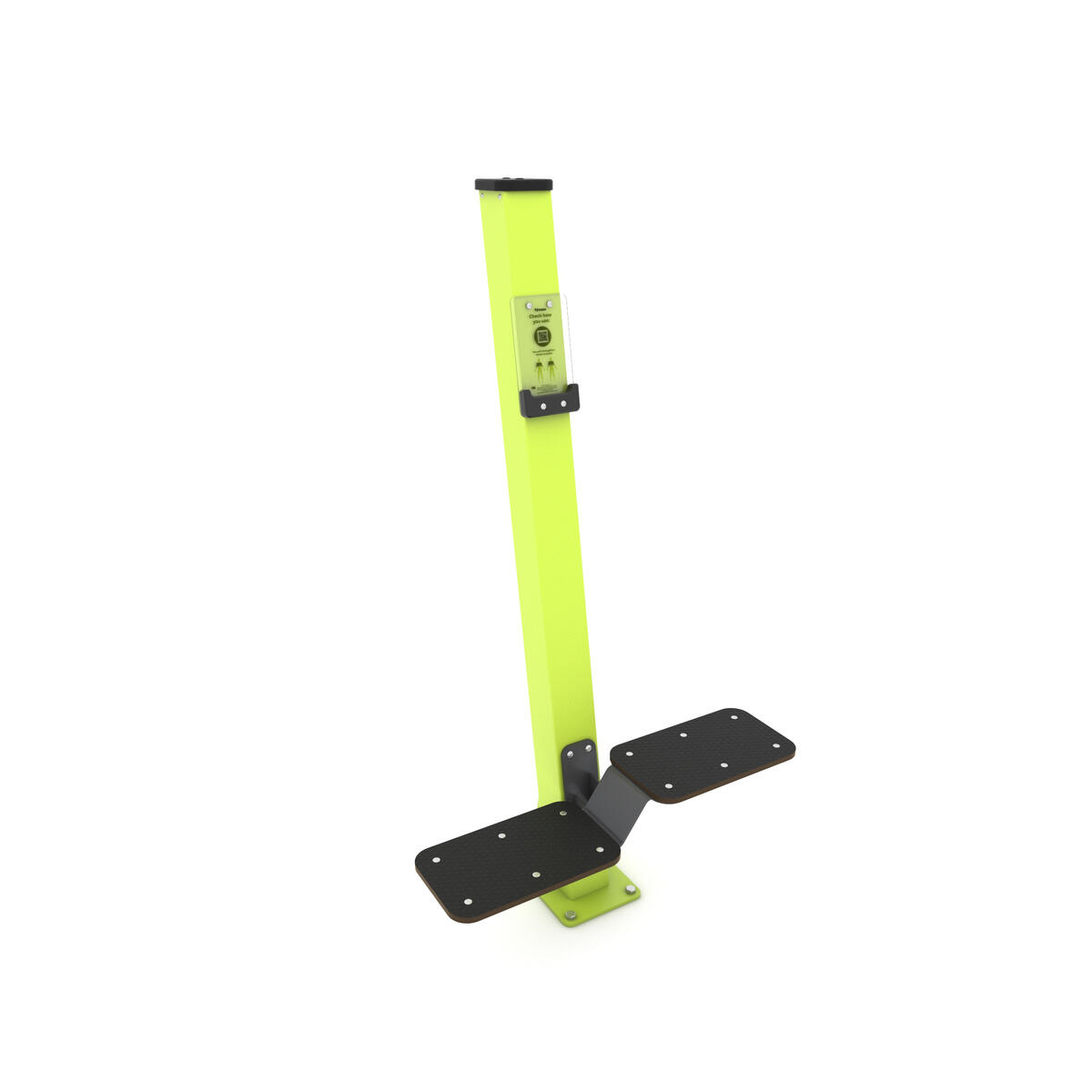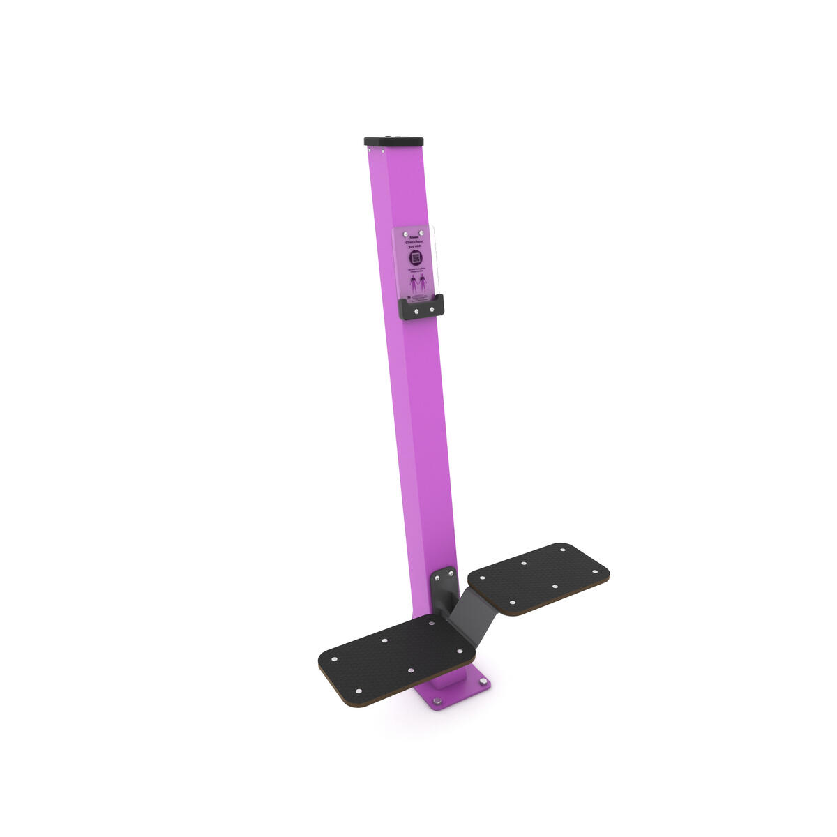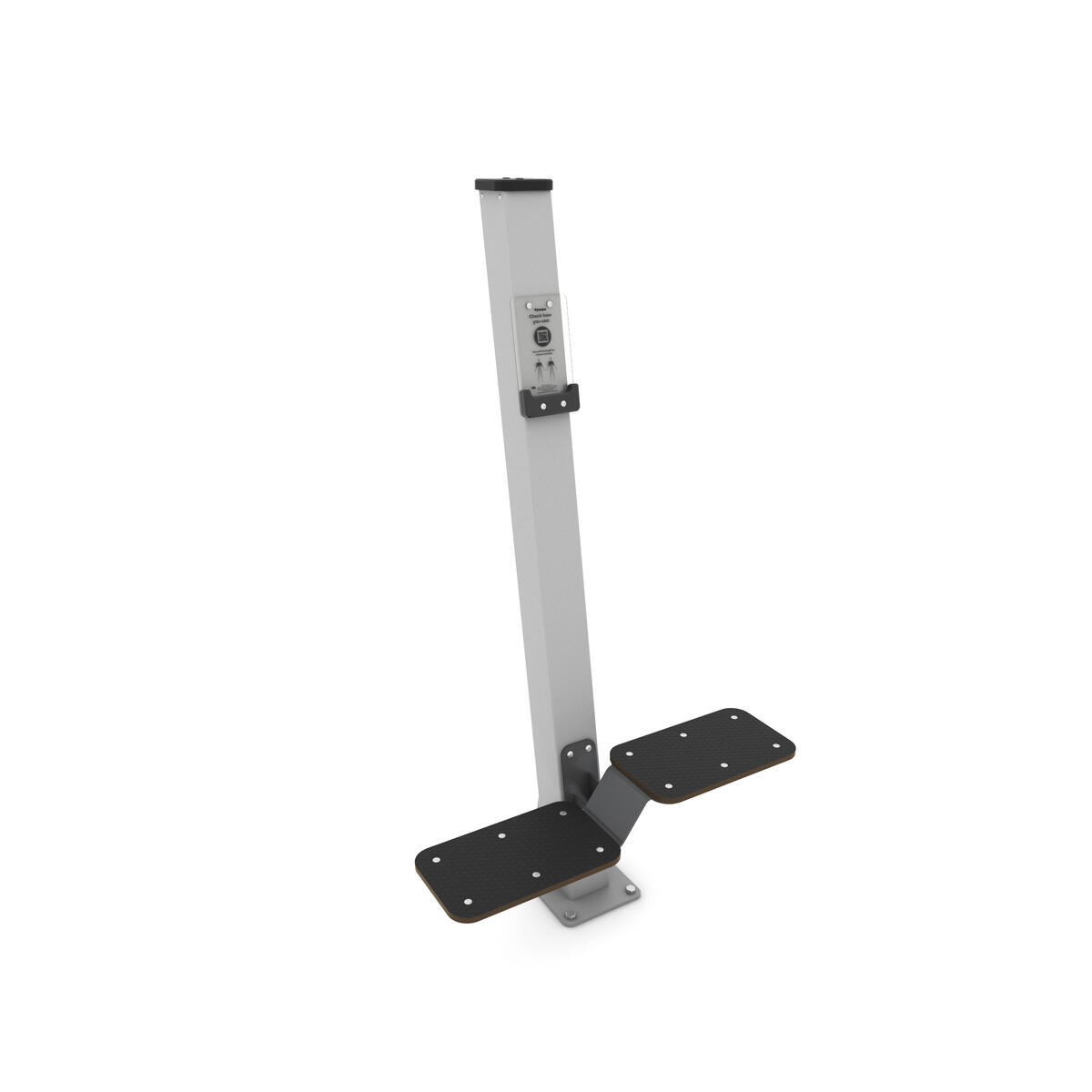 Udendørs træningsredskab. Steptræning udvikler gode ben- og hoftemuskler, forbedrer blodcirkulationen og tilstanden i hele kroppen. Træningen er også med til at opretholde en god koordination. Farven sølv har en base i rustfrit stål. Alle andre farver er i pulvergalvaniseret og pulverlakeret stål. Mobilholder i polycarbonat og HDPE. K3 forankring medfølger.