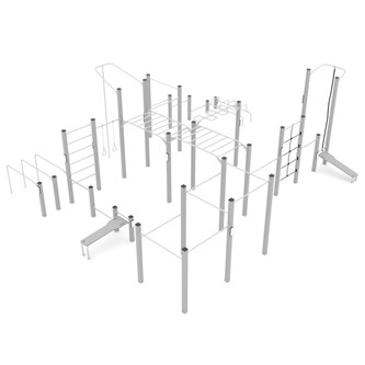 Workout-serien er en række træningsredskaber, der primært er beregnet til træning med kropsvægten som udgangspunkt. Konstruktionen er i pulver galvaniseret og pulverlakeret stål. Farven sølv (-99) er udelukkende af rustfrit stål. Klatrenettet er af stålforstærket polypropylen. Håndtag og kæder af rustfrit stål. Redskabet er udstyret med et aluminiumskilt skruet fast på en HDPE-plade med træningsinstruktioner og QR-kode, der fører dig til en kort video med instruktioner. Træningsbænkene er lavet af holdbart højtrykslaminat. Forankring til nedstøbning medfølger.