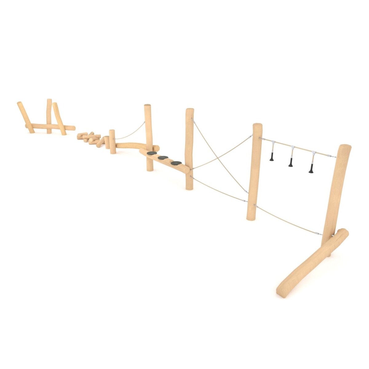 Balancebane med otte balance- og klatreelementer. Fantastisk element for både små og store, bl.a. til træning af balance og koordineringsevnen. Bliv bedre til at bedømme afstande og være opmærksom på retningsfornemmelsen. Stolperne nedgraves og støbes i beton. Træet, der er brugt til denne serie, er fra langsomtvoksende robinietræer i Europa. Robinietræ er fra naturens side yderst resistent mod svamp og råd og skal således ikke imprægneres for at modstå det danske vejrs omskiftelige luner. At det er langsomtvoksende gør robinietræet til et bæredygtigt valg for dig, der er på udkig efter et robust og holdbart legeredskab. Se produktblad for materialespecifikation. Ved installation skal den medfølgende manual altid følges. Den nyeste version kan rekvireres på forespørgsel.