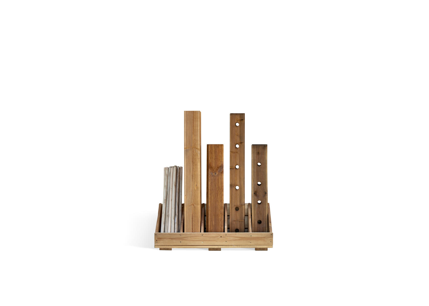 Udendørsmiljøet giver de bedste forudsætninger for at bygge og konstruere i stor skala. Disse store planker fremmer fri leg, konstruktion, problemløsning og kreativitet. Den praktiske stabelopbevaring hjælper med at holde orden i udemiljøet. Sættet indeholder i alt 40 dele: 8 stk. 1 meter planker, 2 stk. 1 meter planker med huller, 8 stk. 75 cm planker med huller, 2 stk. 75 cm planker og 20 stk. 60 cm rundstokke. Fremstillet af FSC-certificeret fyrretræ, som er overfladebehandlet med vandbaseret lak. Opbevaringen leveres usamlet.
