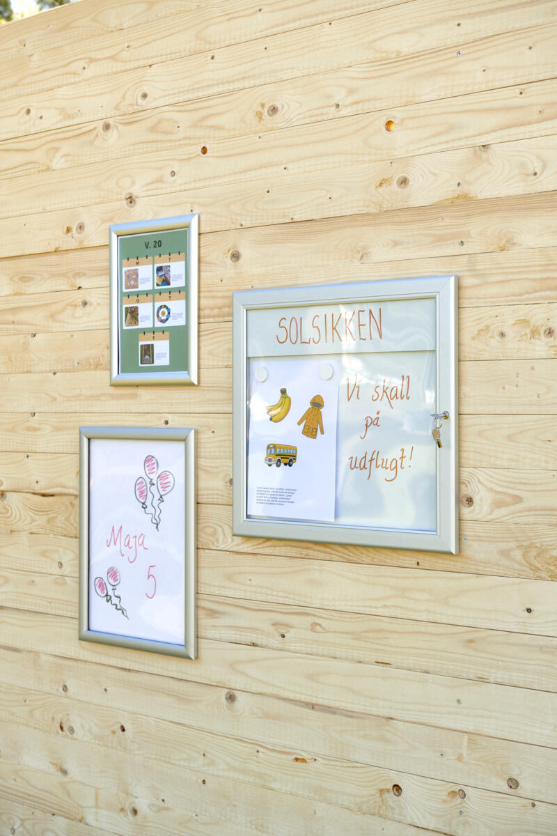 Disse rammer er designet til udendørs brug og beskytter mod vejr og vind, samtidig med at de gør det lettere at dokumentere og informere i udemiljøet. De er ideelle til at synliggøre børnenes arbejde, dele ugens aktiviteter, give tips til hvordan miljøerne eller legeredskaberne kan bruges, eller til anden vigtig information. Rammerne er monteret med skumlister under profilerne, hvilket forhindrer vand i at trænge ind. Rammernes smarte snapfunktion gør det nemt at udskifte indholdet. Leveres med skruer og rawlplugs.