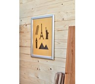 Disse rammer er designet til udendørs brug og beskytter mod vejr og vind, samtidig med at de gør det lettere at dokumentere og informere i udemiljøet. De er ideelle til at synliggøre børnenes arbejde, dele ugens aktiviteter, give tips til hvordan miljøerne eller legeredskaberne kan bruges, eller til anden vigtig information. Rammerne er monteret med skumlister under profilerne, hvilket forhindrer vand i at trænge ind. Rammernes smarte snapfunktion gør det nemt at udskifte indholdet. Disse snaprammer kan også monteres med tykkere indlæg og laminerede plakater, op til 4 mm. Leveres med skruer og rawlplugs.