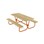 Mobilt bord/bænk i træ med aluminiumstel. Til voksne. Flytbar med 2 hjul. Let og stabil konstruktion. Afrundede hjørner og oliebehandlet træ. Bænk og bordplade er monteret på aluminiumsprofiler, gavlenderne er formonterede. Samlevejledning, skruer (i rustfri stål) og umbrachonøgle medfølger. Mål: L180xB130 cm. Højde på bordpladen 72 cm, bænk 43 cm. Bredde: bordpladen 70 cm, bænk 31 cm.