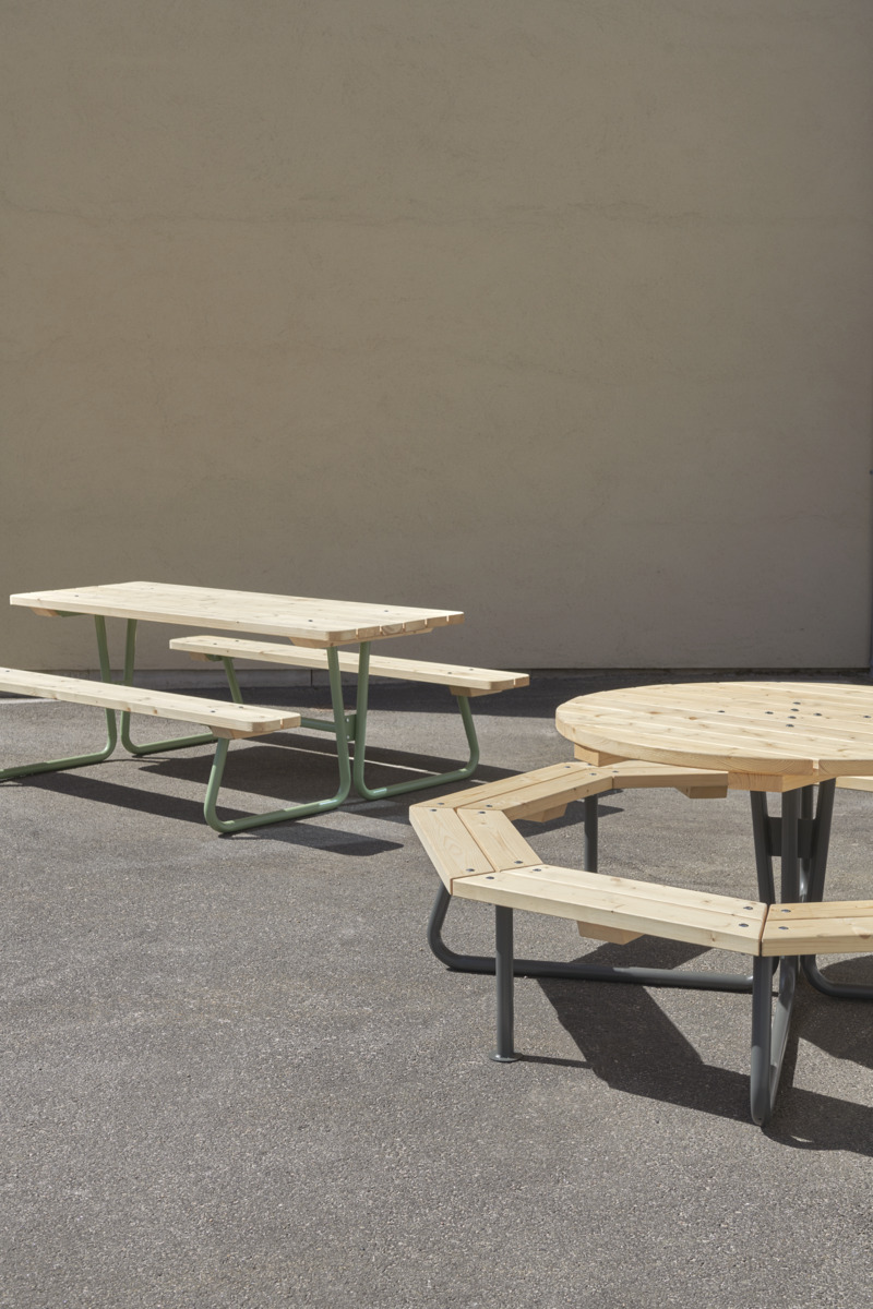 Rørvik picnicbord er en serie picnicborde i to forskellige højder, fem forskellige længder og et rundt alternativ.
