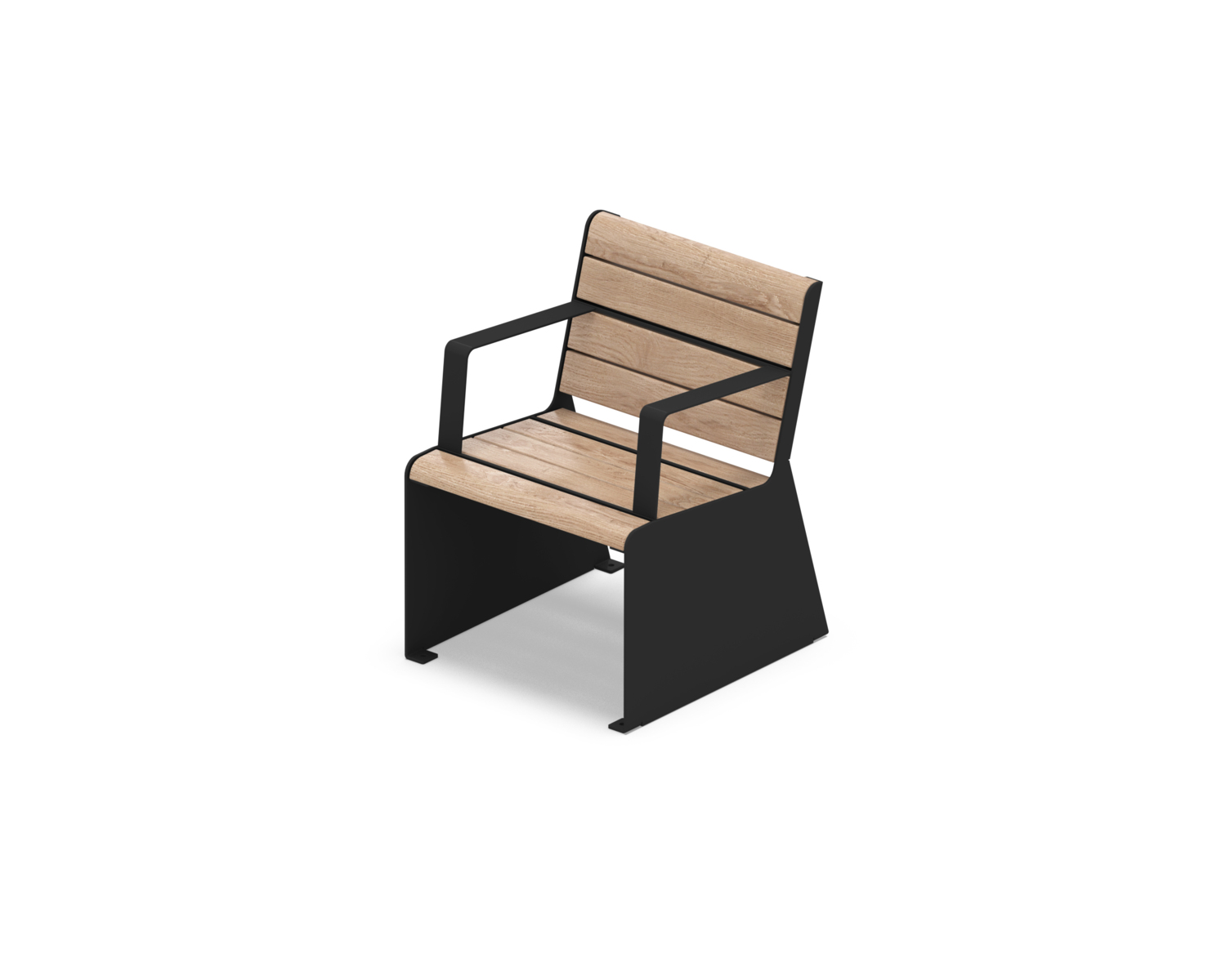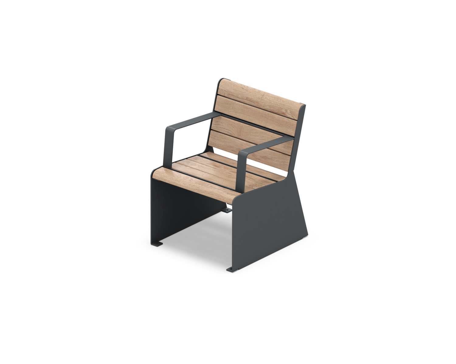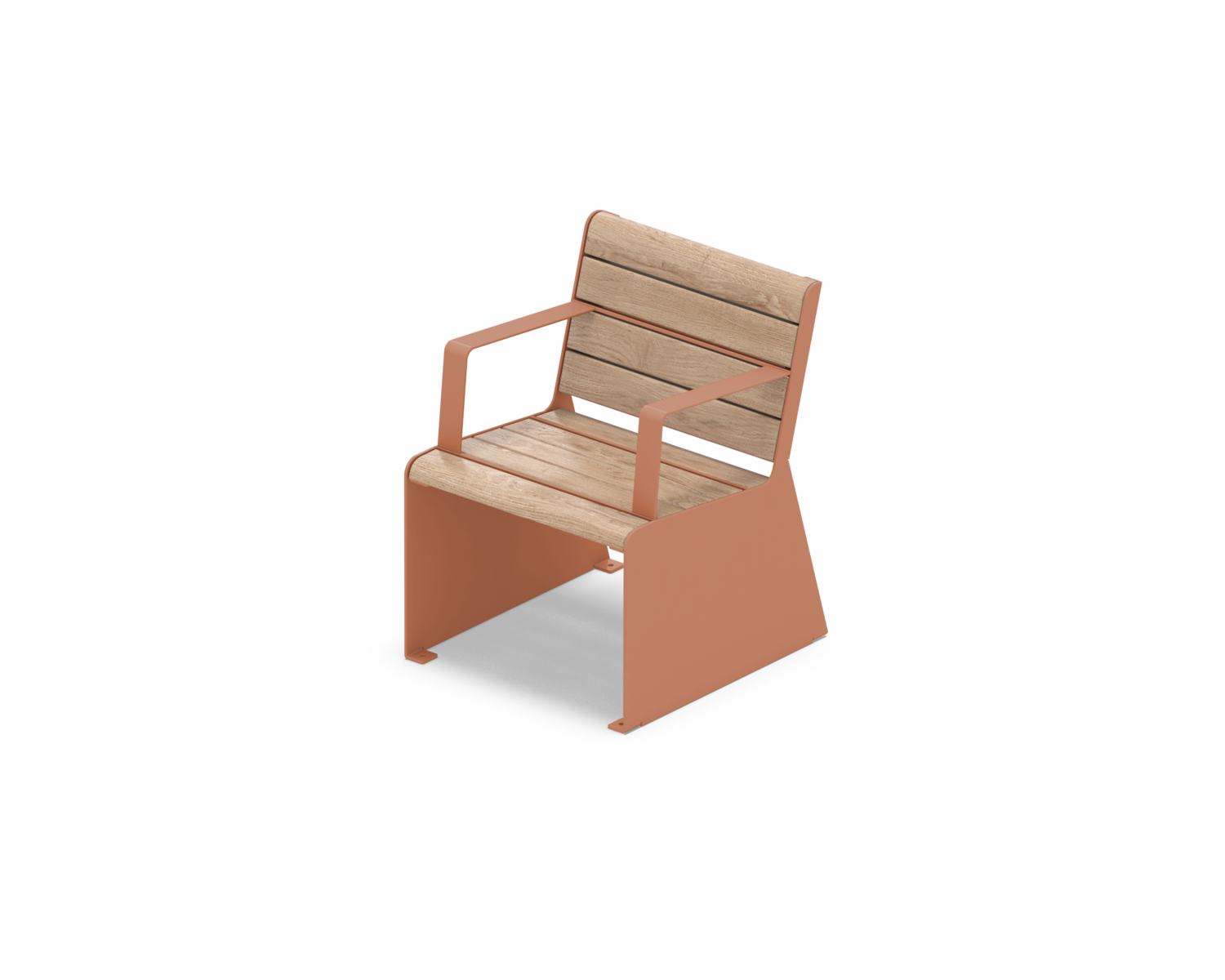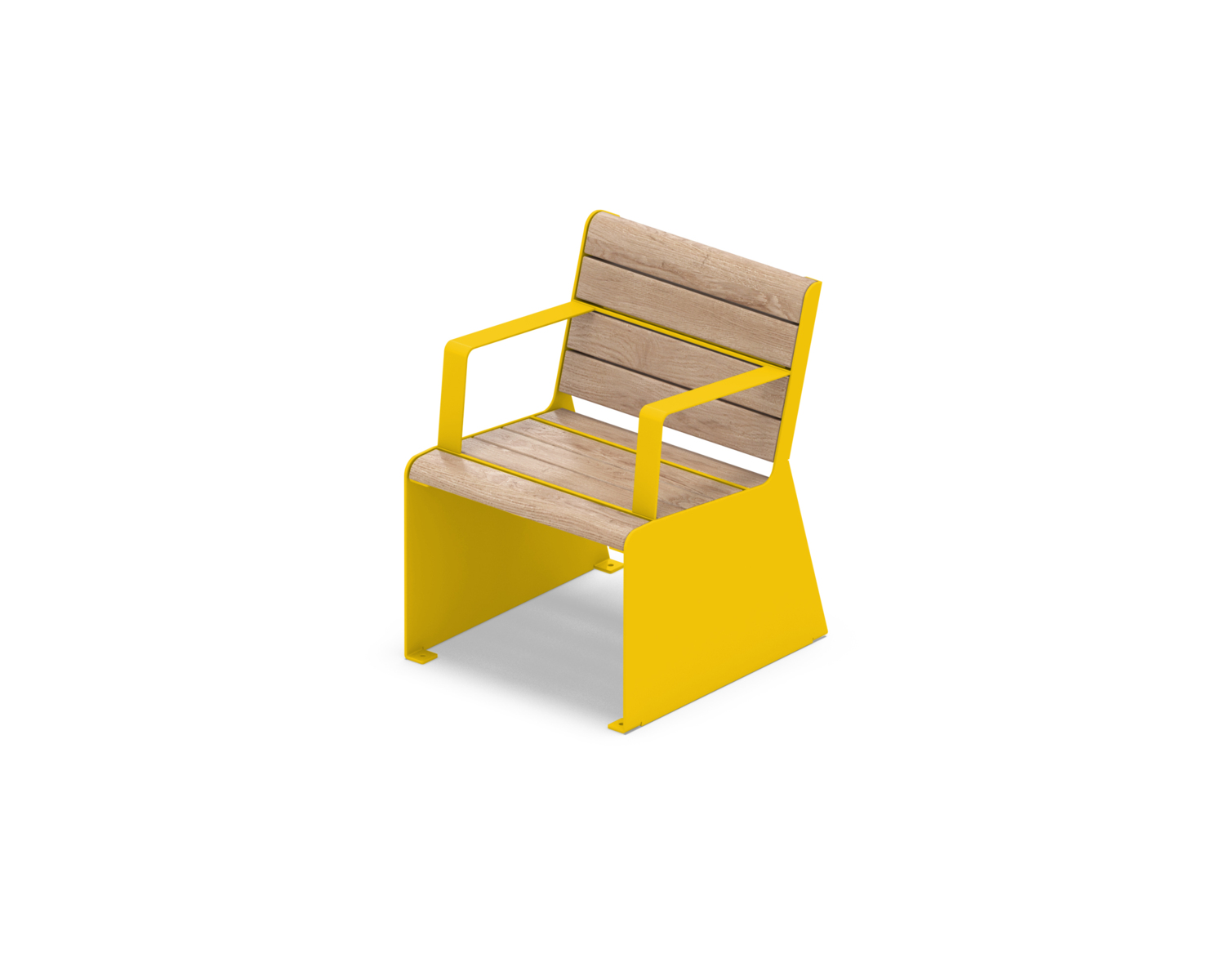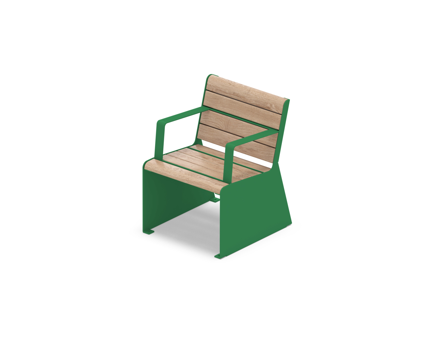 En stol med behageligt ryglæn i et moderne, enkelt og tidløst design, der passer til de fleste udemiljøer. MeetUp kendetegnes af rene linjer og funktionalitet og er ideel til offentlige rum som skolegårde og parker. En parkbænk skaber et hyggeligt mødested og muliggør social interaktion. Modulerne er fremstillet af FSC®-certificeret nordisk fyrretræ, og du kan vælge mellem anti-råd behandling og vandbaseret bejdse til udendørs brug. Modulernes stålflader fås i flere farver.