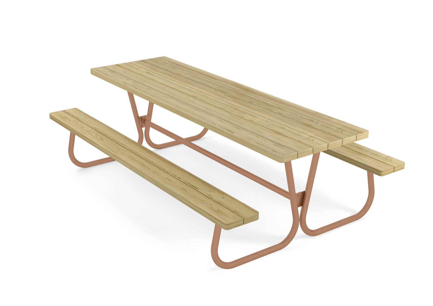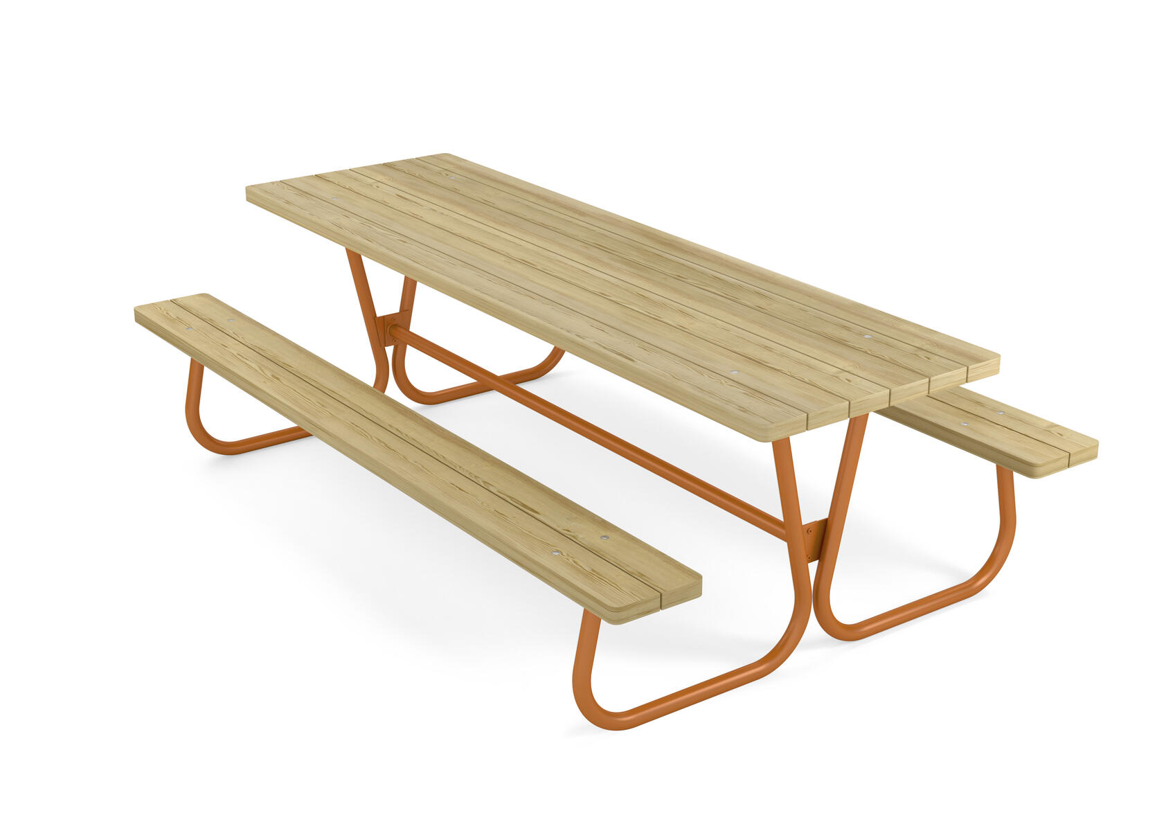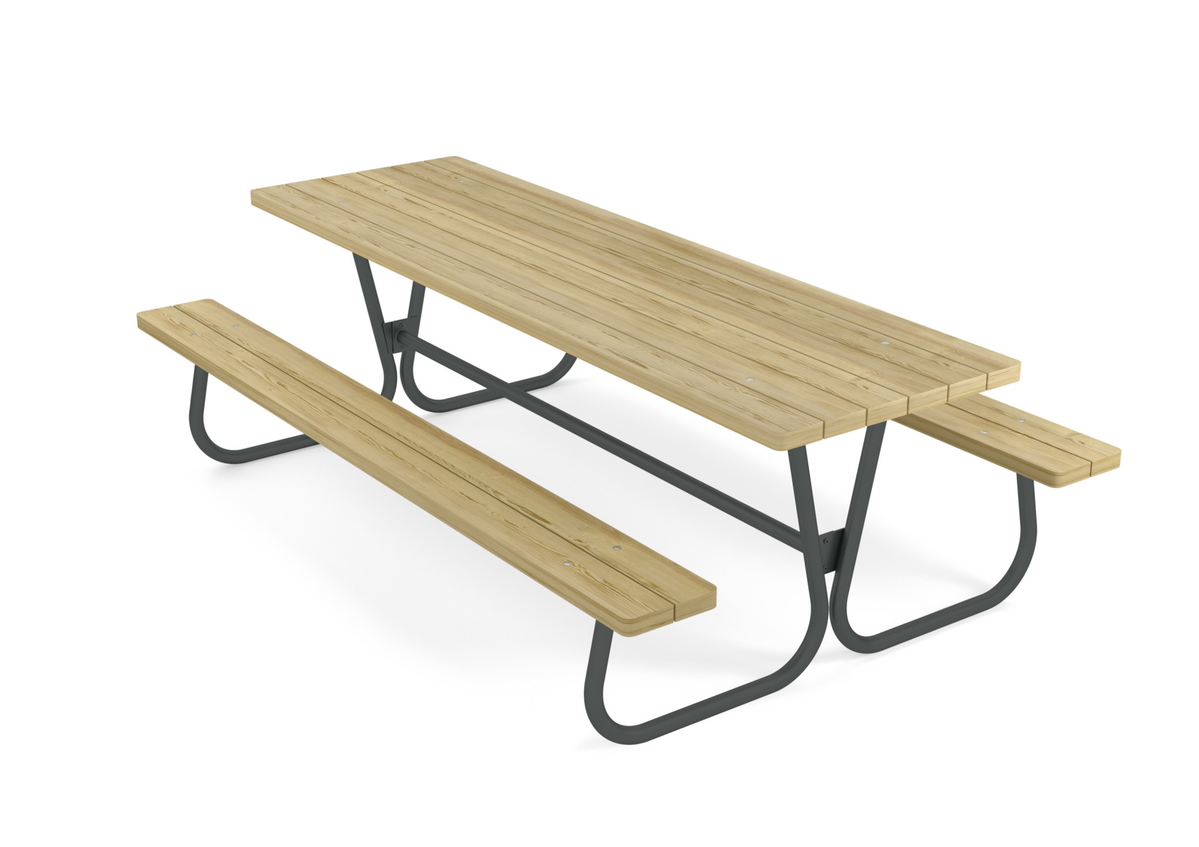 Rørvik picnicbord fyrretræ lakeret stel 230x70 H72 cm