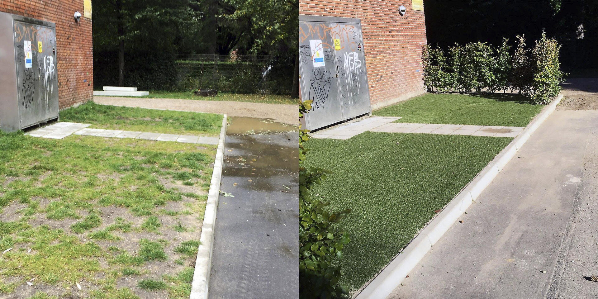 Vores hybridgræs rulles ud over den naturlig græsplæne, hvilket med tiden betyder, at de naturlige græsstrå vil blande sig med de kunstige. Hybridgræsset giver et flot, grønt look og er med til at beskytte det skrøbelige naturlige græs, så det får de bedst mulige vækstbetingelser.