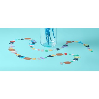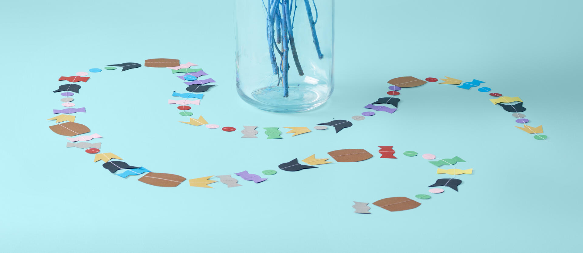 1. Klip forskellige figurer (slik, kroner og fastelavnstønder) ud i farvet karton.