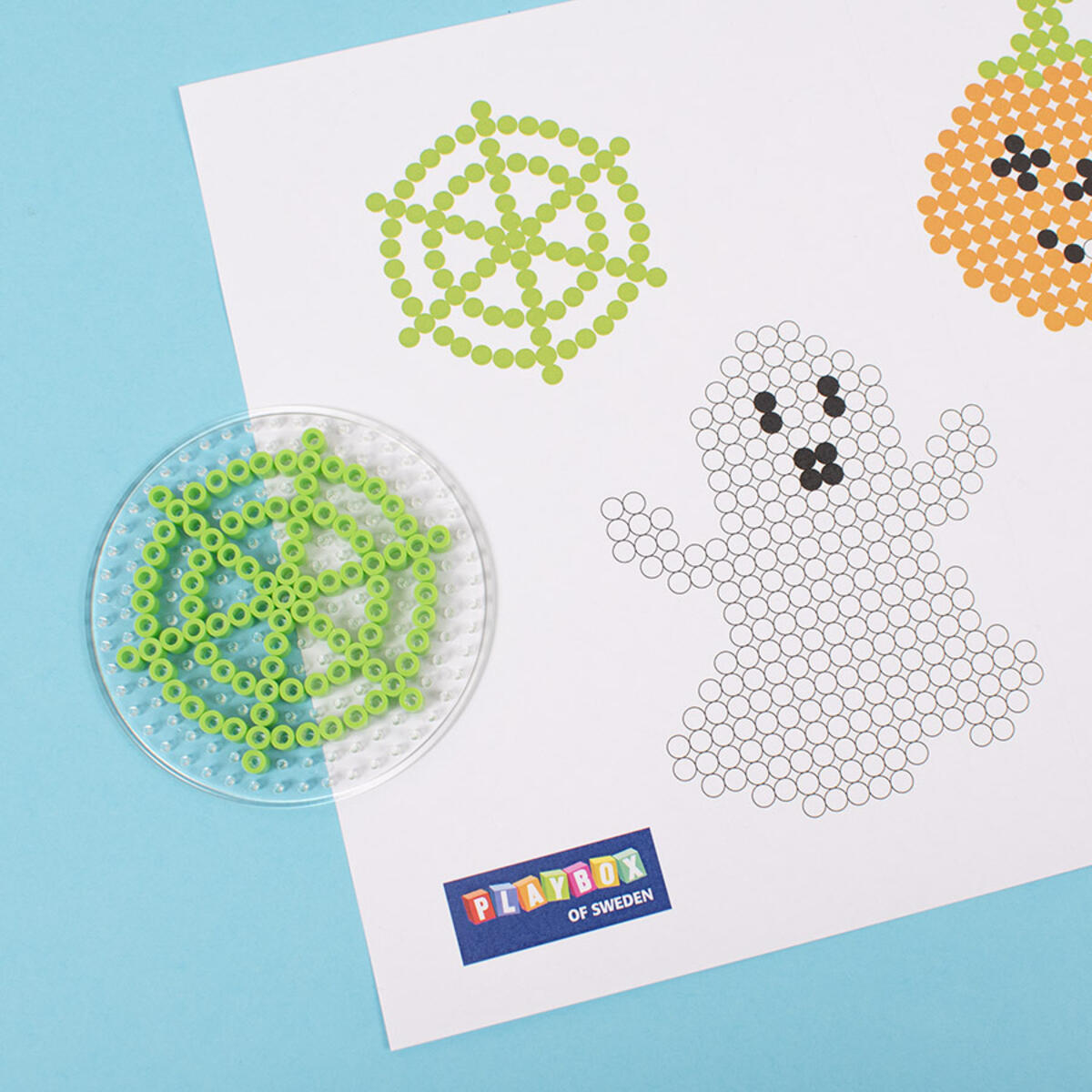 Print billed-skabelonen ud, lav figurerne med rørperler, og stryg perlerne sammen med et stykke bagepapir imellem.