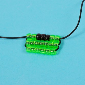 - Sæt derefter 7 grønne perler på den ene ende, og før den anden ende gennem de samme 7 perler.