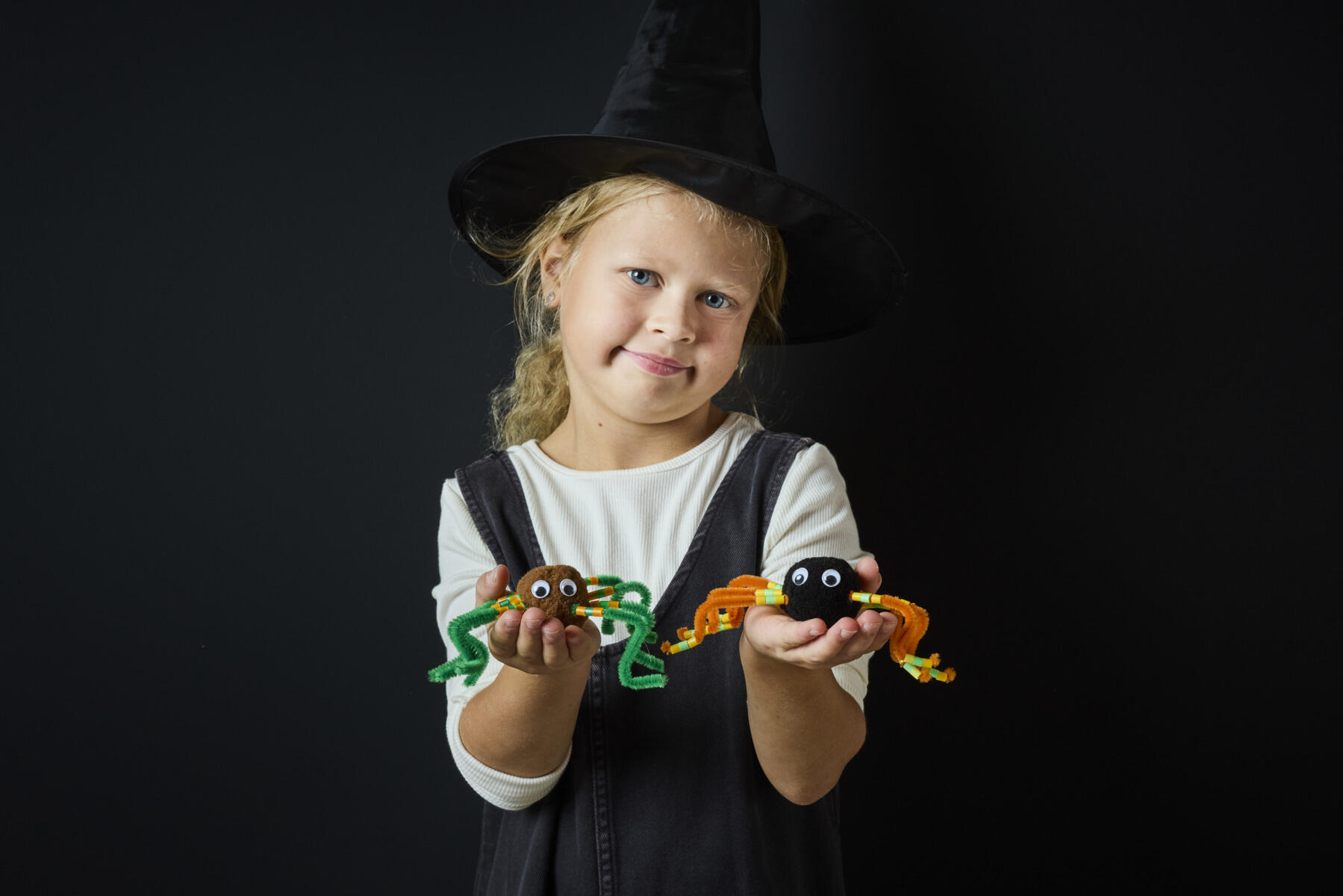 - Find fire lange piberensere i en valgfri farve, og klip dem over på midten, så du får otte ben.