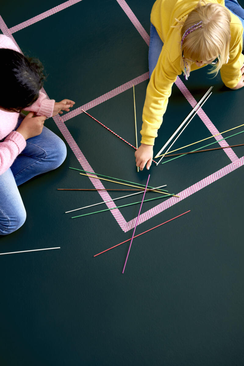 1. Vælg dine yndlingsfarver, mal blomsterpinde, og lav dit eget julede pindespil.