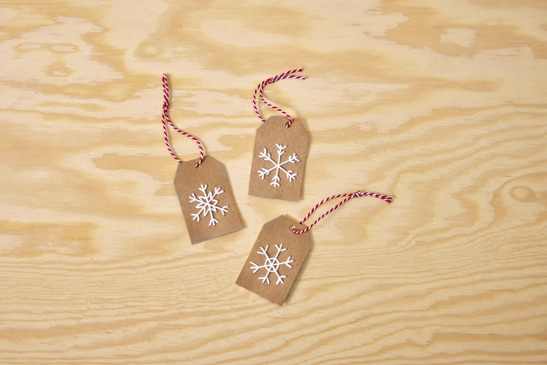 - Lav små huller i papiret dér, hvor tråden skal sys igennem.