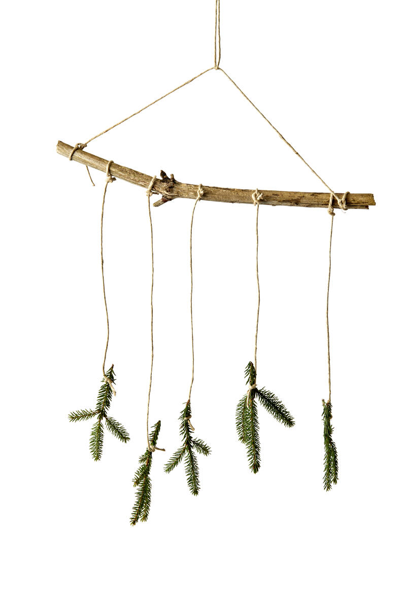2. Bind kviste i forskellige længder fast på pinden.