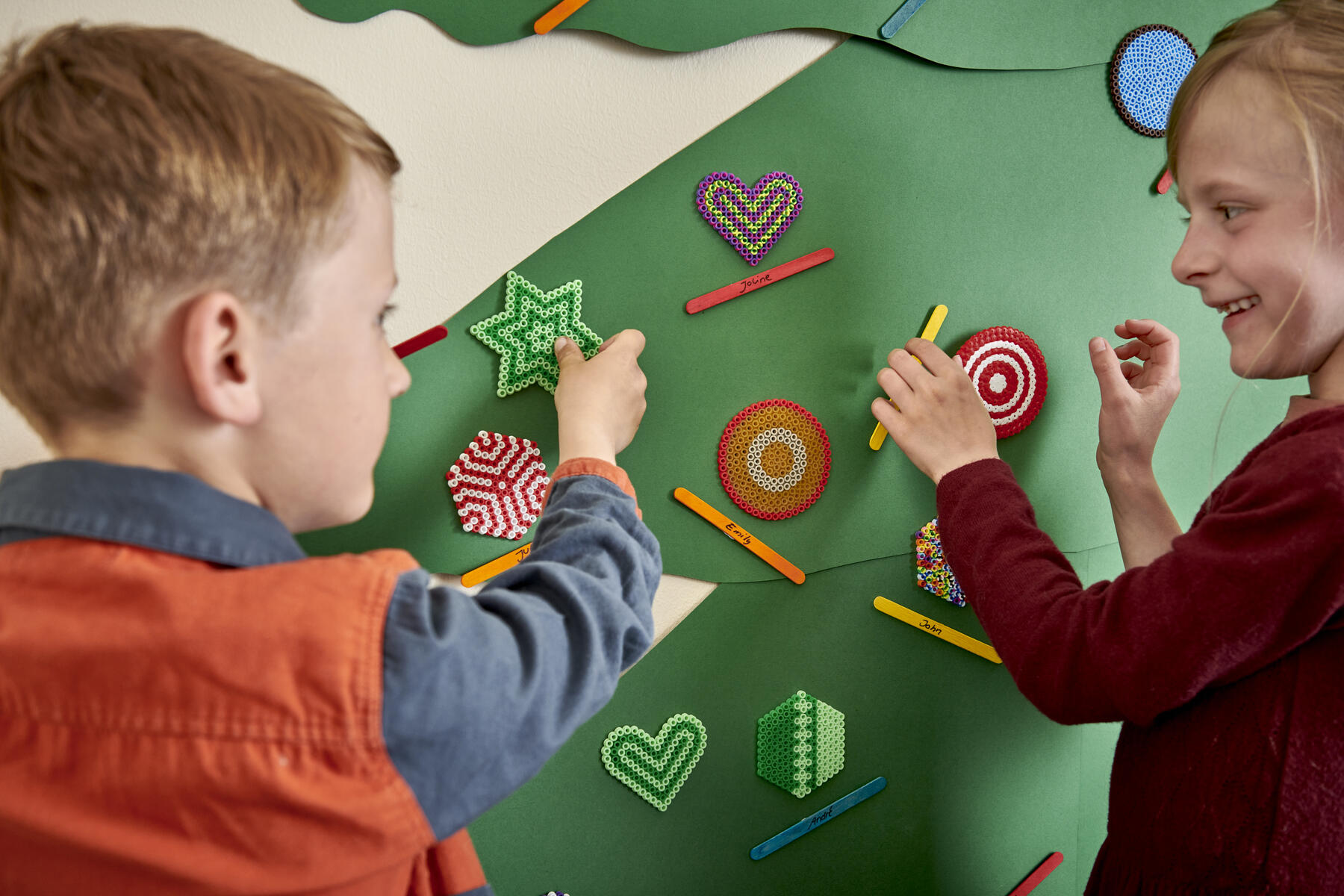 Efter interviewet skal børnene lave julepynt af rørperler sammen.