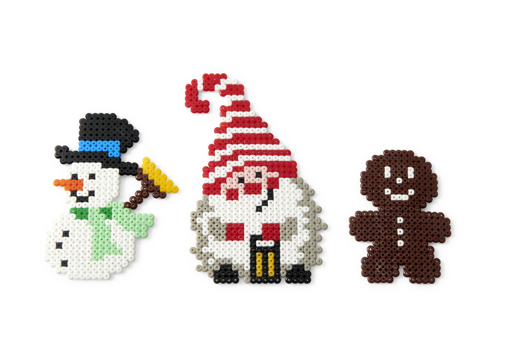 - Stryg perlerne sammen med et bagepapir imellem. Husk at stryge motivet langsomt og længe, så perlerne smelter ordentligt sammen (men ikke i pladen). Lad motivet afkøle, før det tages af pladen (du kan bruge en strikkepind til at løse motivet fra pladen). Både strygejern og smeltet plast er meget varmt og kan give brandskader, så dette bør derfor gøres af en voksen eller under opsyn af voksne.