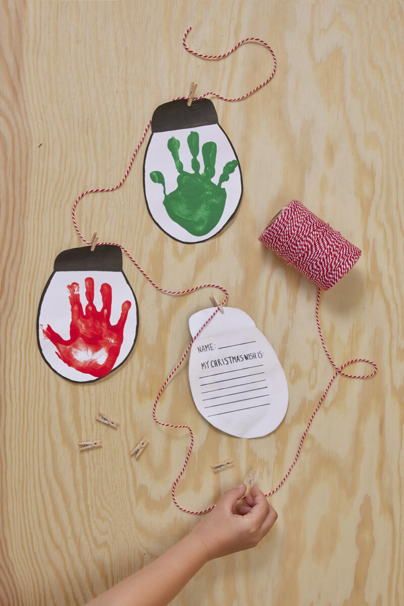 - Sæt derefter alle børnenes glødepærer fast på en snor, og hæng dem op som en guirlande på væggen.