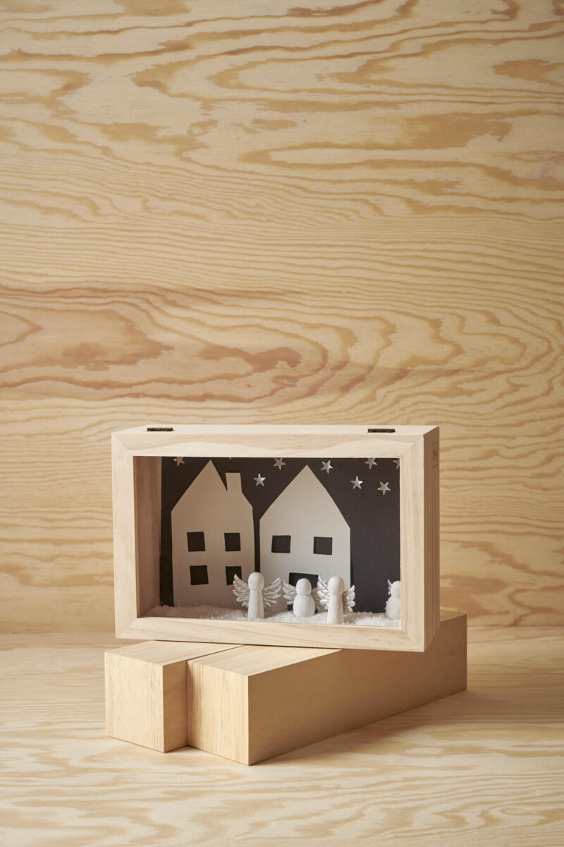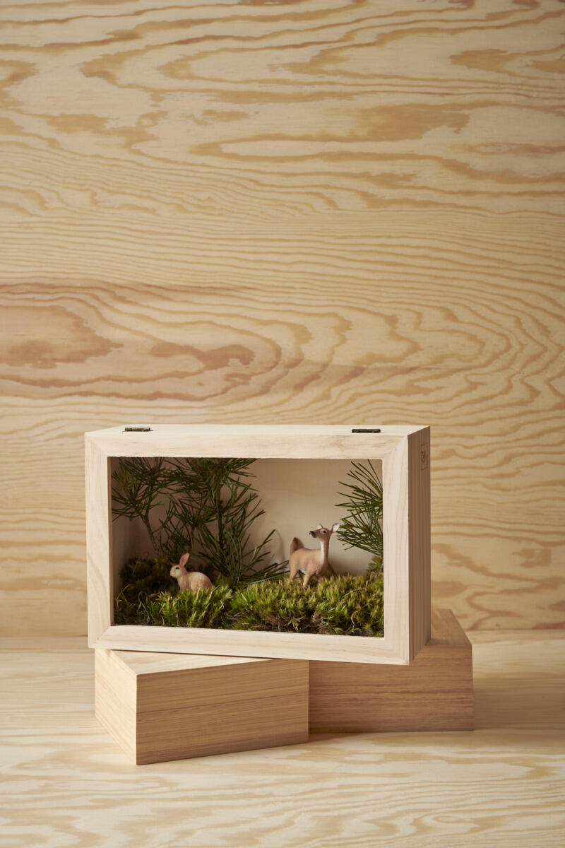 1. Tag en kigkasse og fyld den med mos, grene, plastikdyr – eller hvorfor ikke jeres egne perleplader?