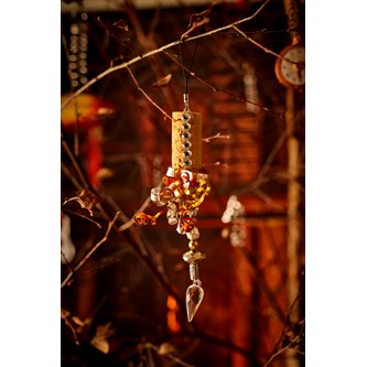 Lav en snor med perler i den ene ende og en prisme i den anden. Lim snorten fast til korken.