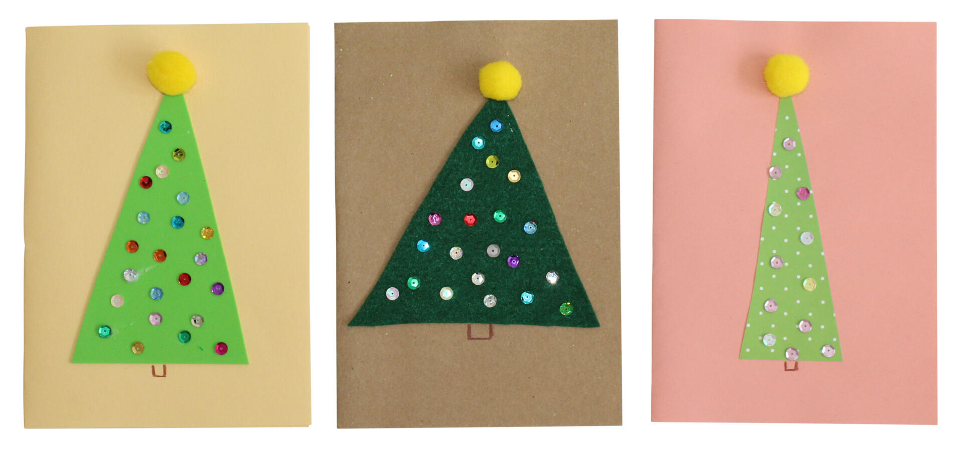 - Klip juletræer ud af dekorationsfilt, og lim dem fast på kortet. Lad det tørre.