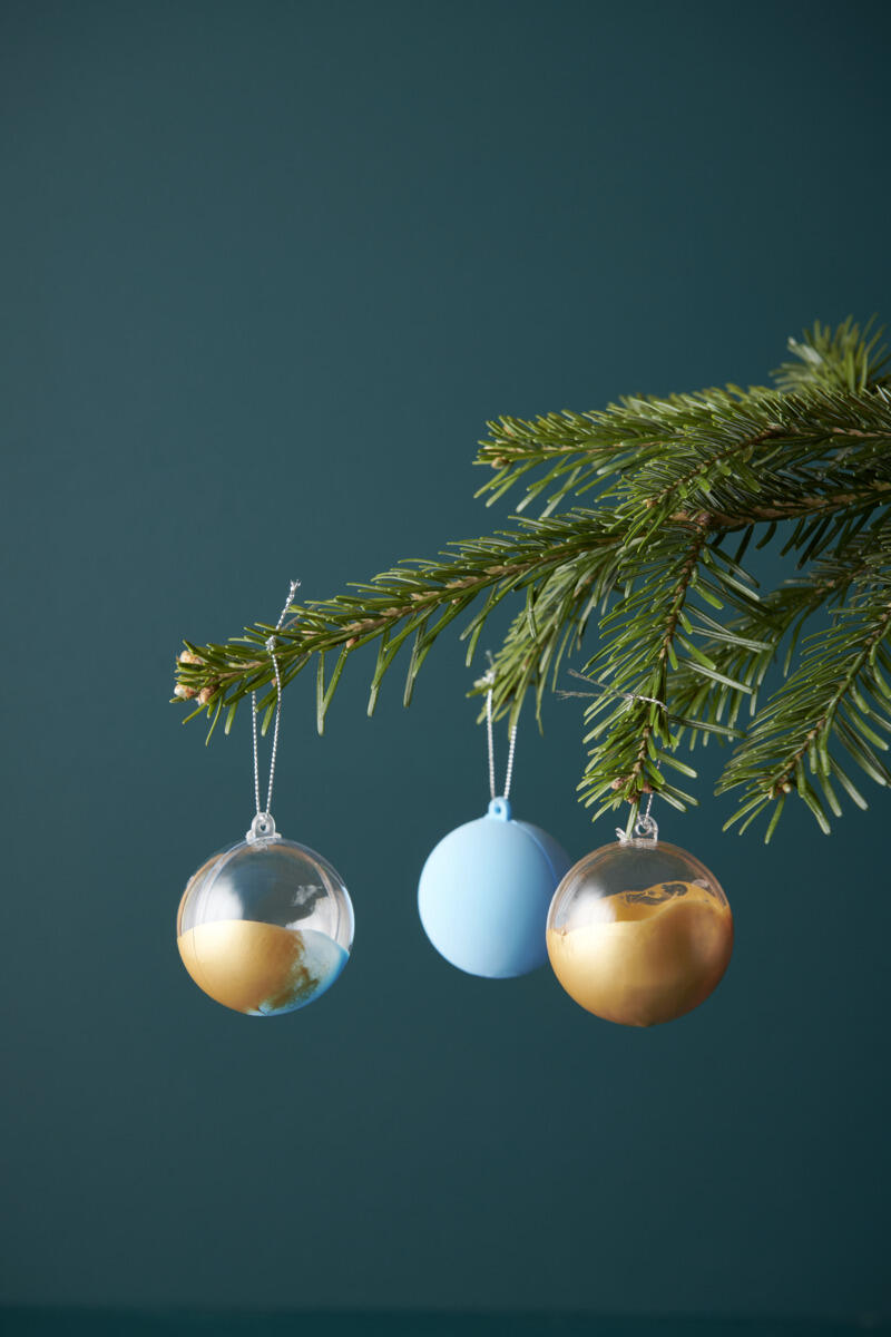 Vi har lavet flere forskellige varianter: Dyp den ene halvdel i maling, eller mal indersiden i forskellige farver. Dyp i lim og derefter i glimmer, eller fyld kuglen med pomponer m.m. Kun fantasien sætter grænser!