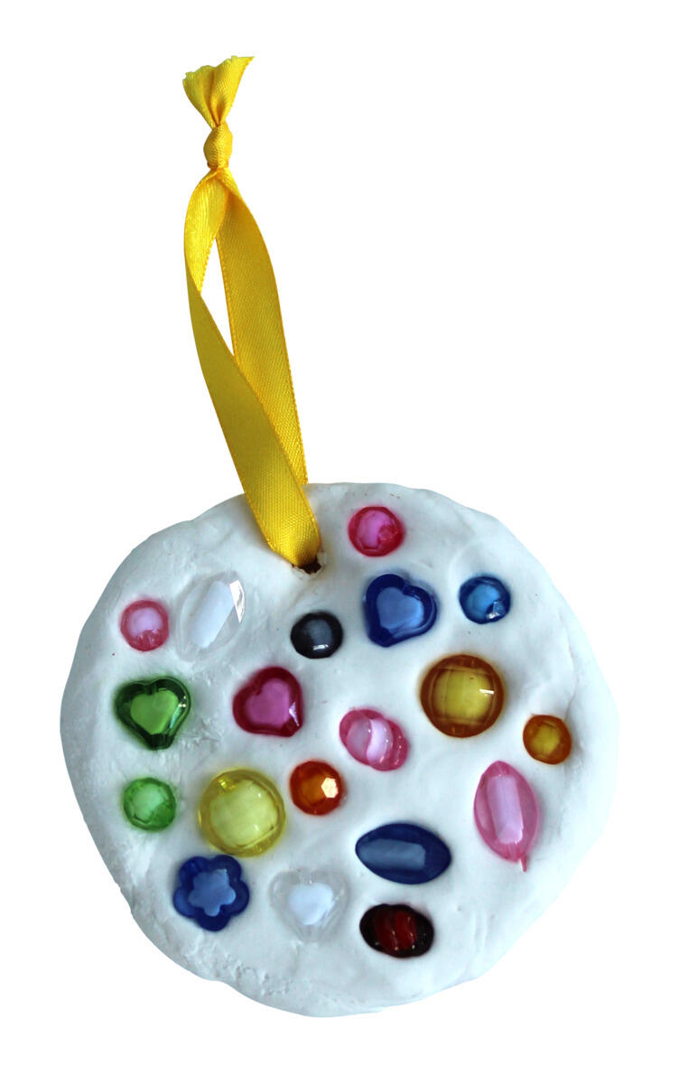 - Tryk en valgfri mængde krystalsten ned i leret, og lav et hul i toppen. Lad dekorationen tørre helt.