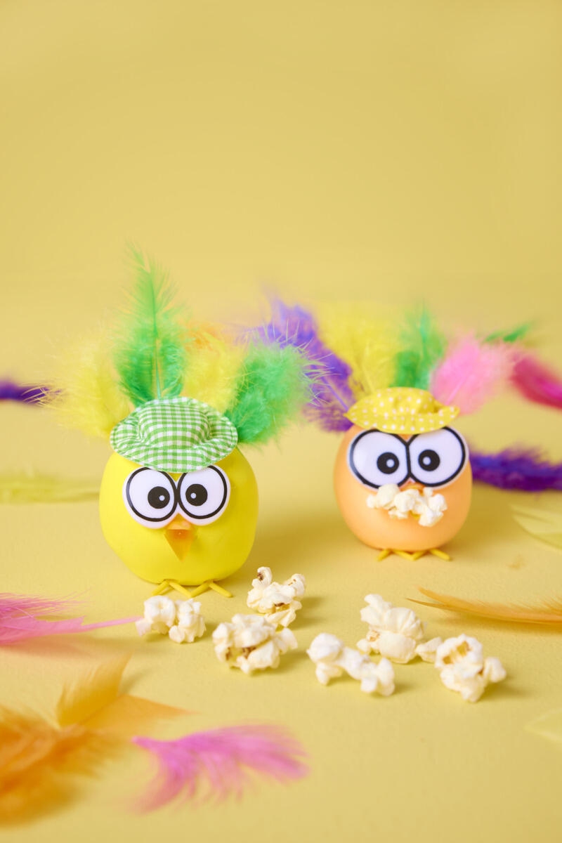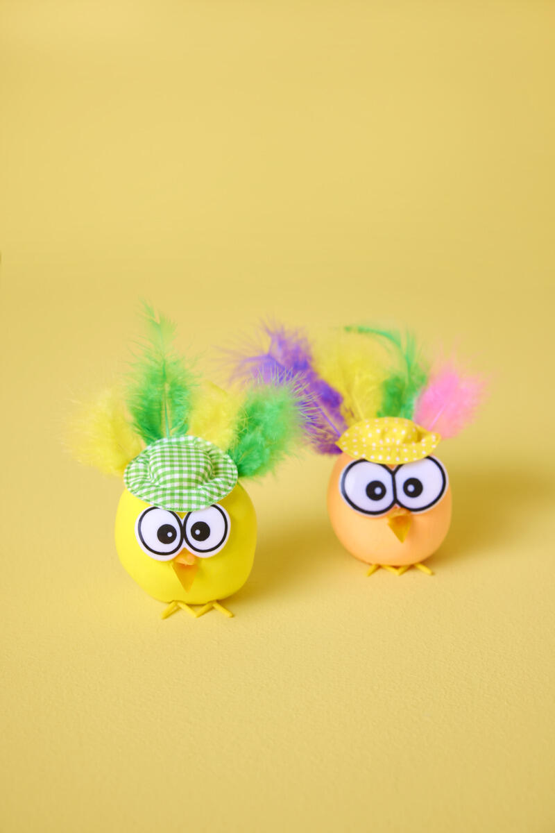 - Lim en lille hat fast på kyllingens hoved.