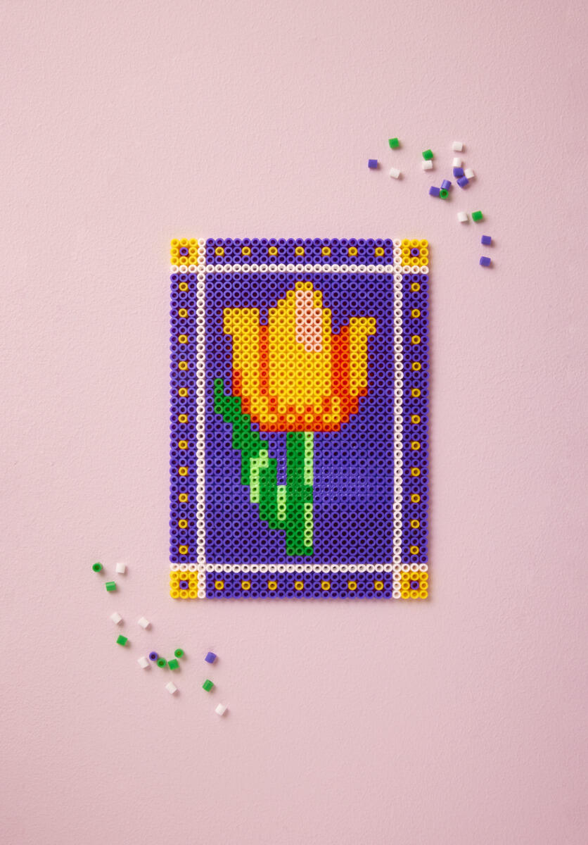 - Print PDF’en med mønsteret. Læg en gennemsigtig perleplade ovenpå, og perle alle delene.