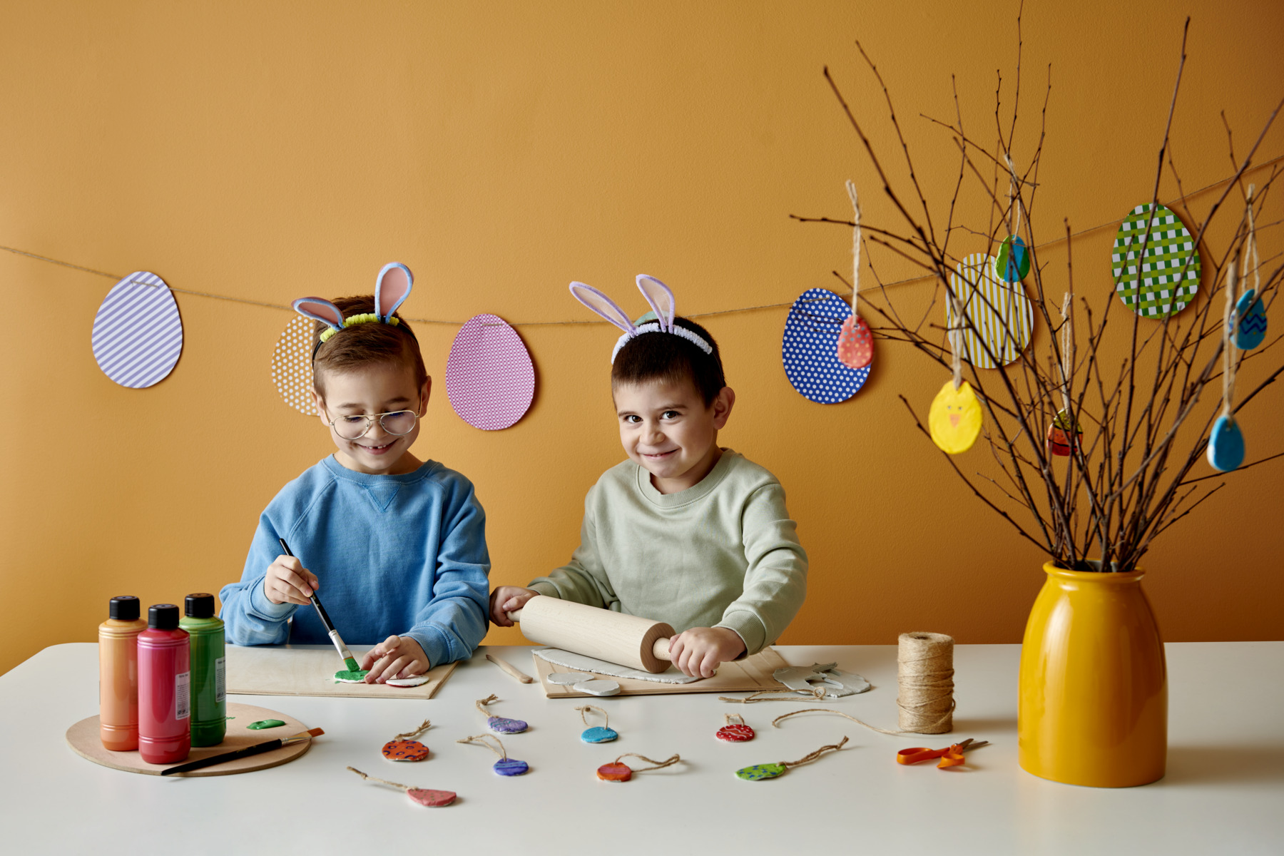 2. Lav et hul i toppen af æggene, og hæng dem på en snor.