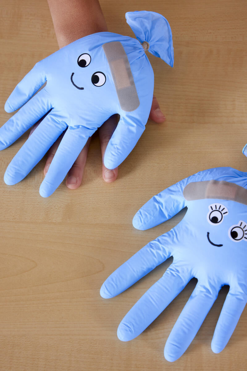 - Tag en handske på hånden, og træk en ekstra handske udenpå den første.