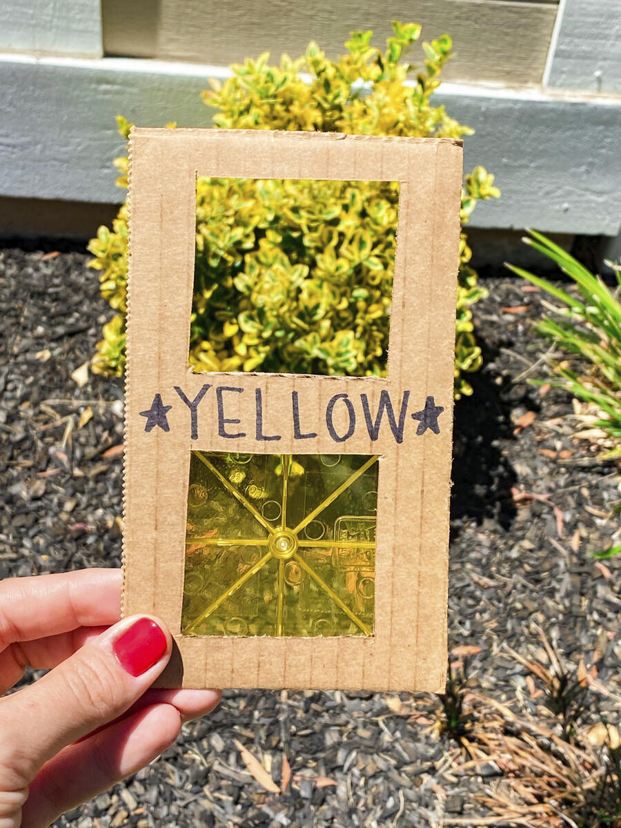 Lav en ramme af pap rundt om en Magna-Tiles-brik. Kig gennem den tomme rude, og led efter farver, der tilsvarer Magna-Tiles-brikken i rammen. Led både ude og inde. Rammen træner og hjælper barnet med at fokusere og koncentrere sig om opgaven. Øvelsen hjælper barnet med at blive mere opmærksom på farver og nuancer samt lægge mærke til alt det, der findes i nærmiljøet.