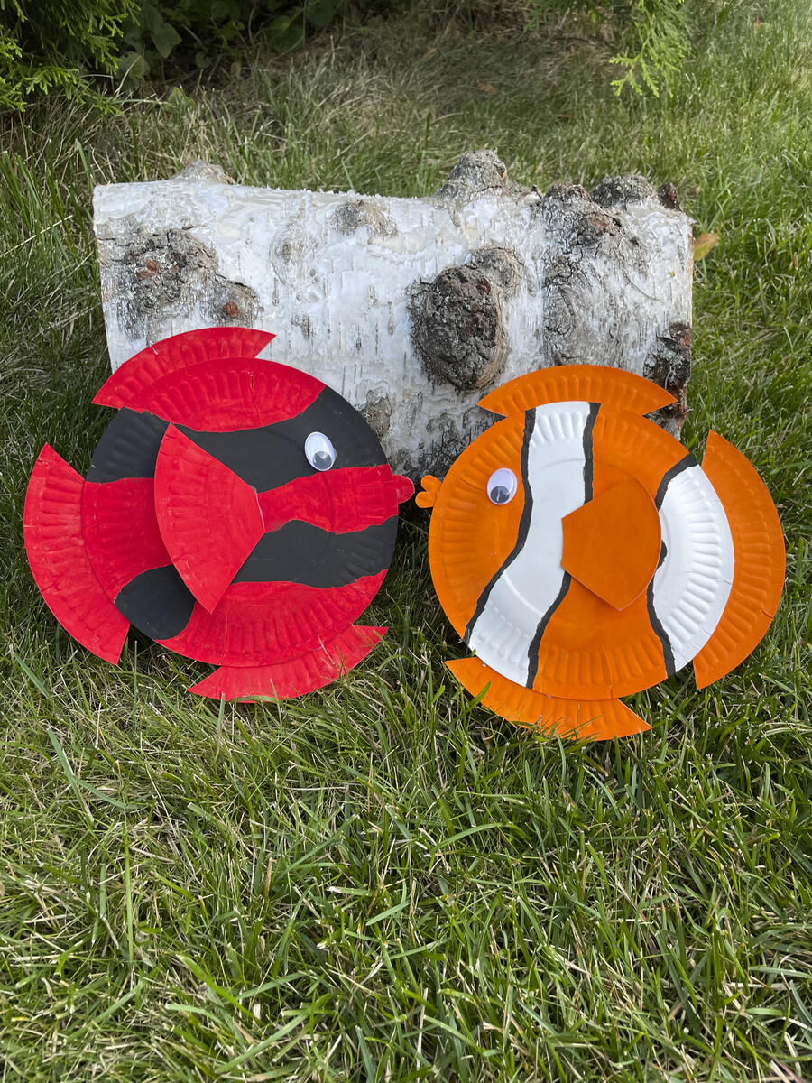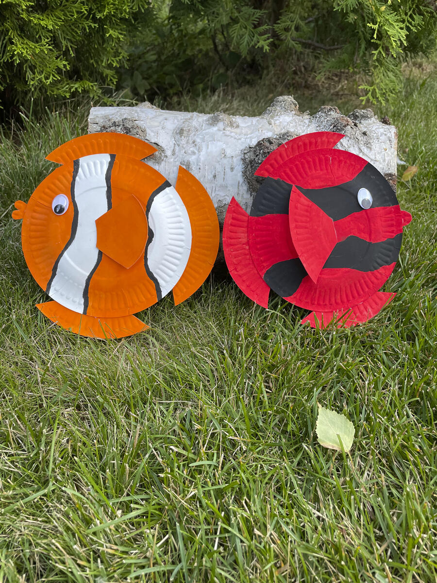 - Mal bagsiden af en paptallerken orange eller rød, alt efter hvilken fisk du vil lave. Lad den tørre.