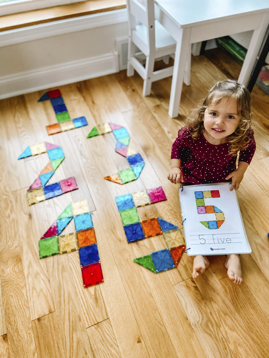 Byg derefter tallet med Magna-Tiles-klodserne.