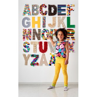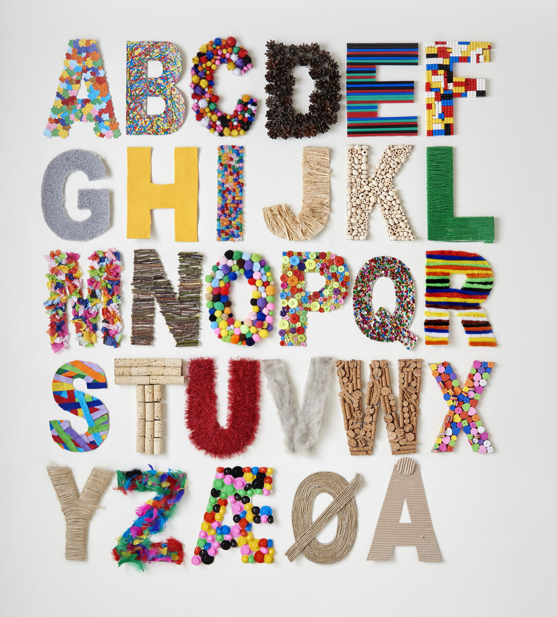 Vælg forskellige naturmaterialer som overflade og lim dem på bogstaverne.