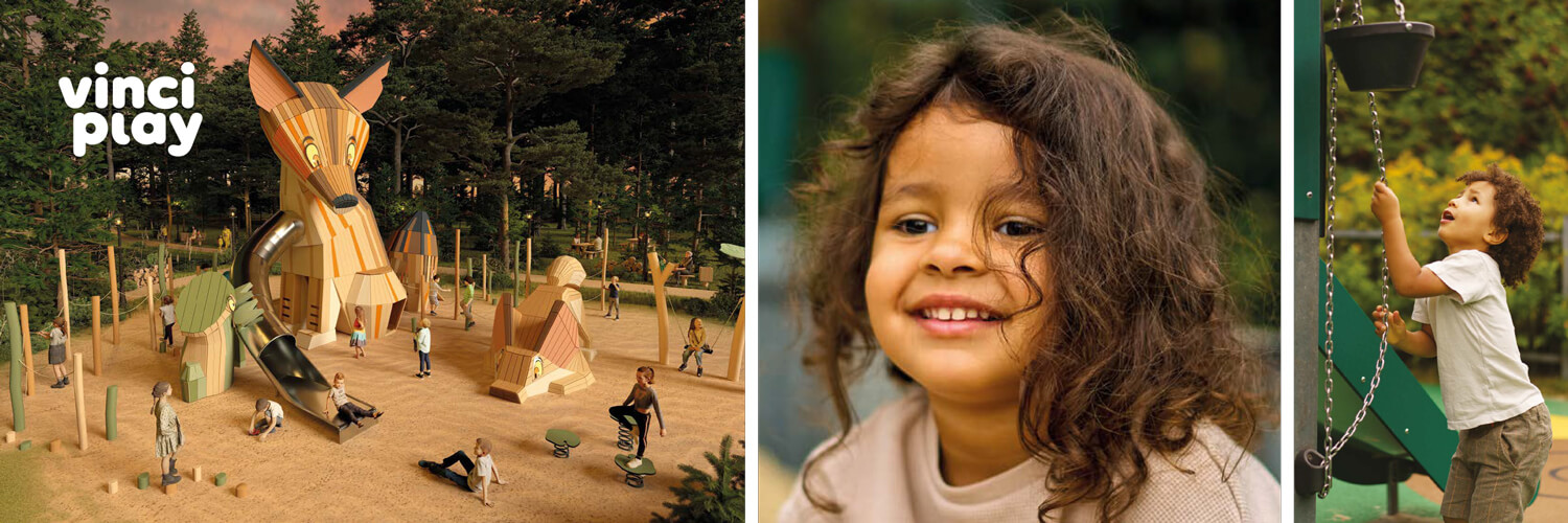 Vinci Play er kendt for høj kvalitet og sikkerhed, men også for modet til at gå nye veje. I stedet for at gentage standardløsninger hentes inspiration fra naturen, eventyr og kreative, abstrakte former.